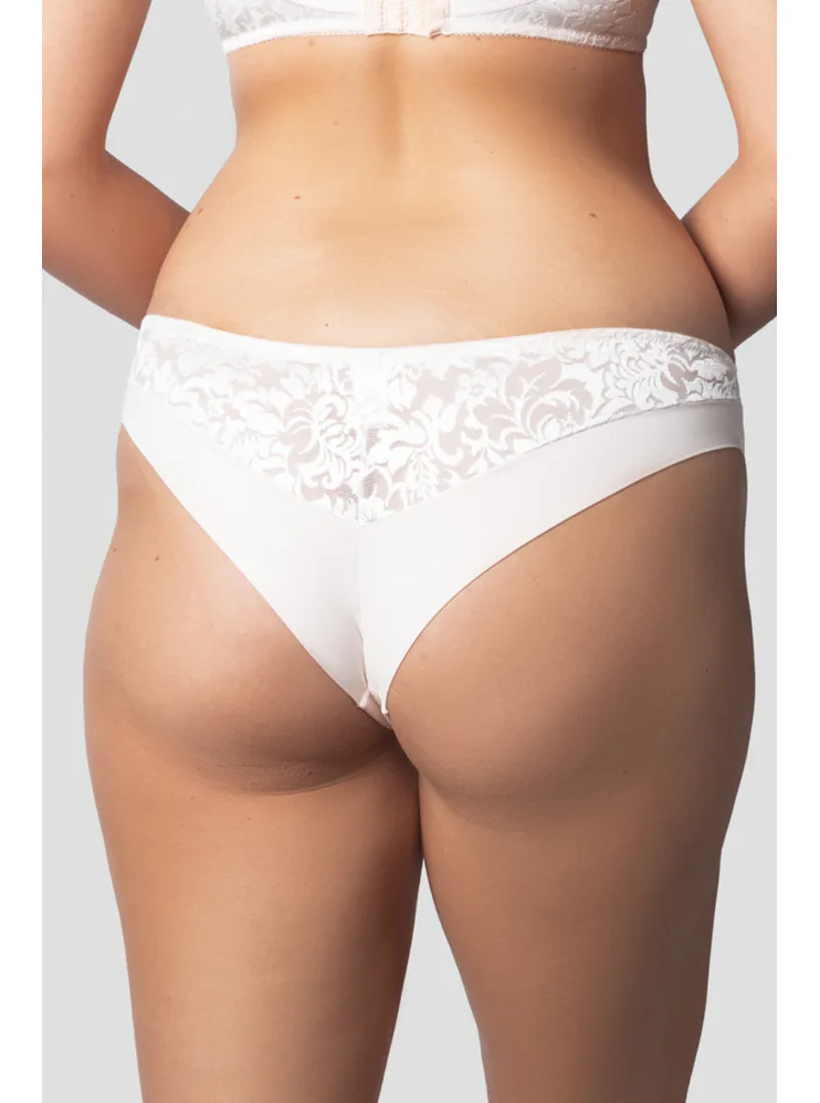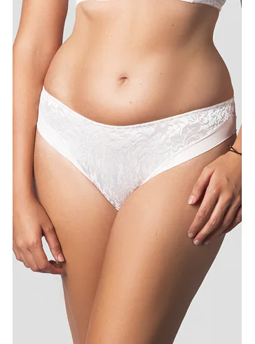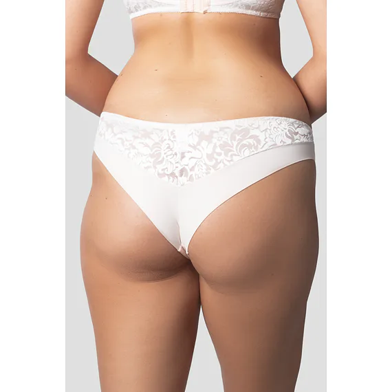 Elegantné nohavičky brazílskeho strihu zvýraznia ženské krivky a vytvoria sexy pozadia. Čipka s kvetinovým vzorom dodáva nohavičkám jemnosť a zmyselnosť. V nohavičkách majú miesto gúm légy, a preto sa nerysujú pod priliehavým oblečením.