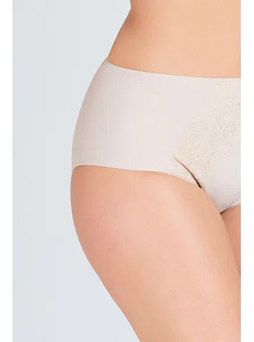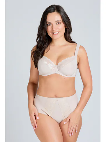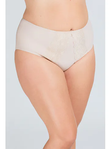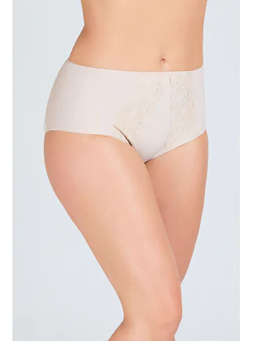 Štýlové dámske nohavičky zaujmú trblietavým žakárovým úpletom a kvetinovou čipkou. Nohavičky s vysokým pásom perfektne sadnú a schovajú problematické partie. Majú sťahovací efekt, opticky zoštíhlia postavu a poskytnú komfort pri nosení.