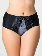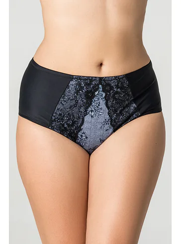 Štýlové dámske nohavičky zaujmú trblietavým žakárovým úpletom a kvetinovou čipkou. Nohavičky s vysokým pásom perfektne sadnú a schovajú problematické partie. Majú sťahovací efekt, opticky zoštíhlia postavu a poskytnú komfort pri nosení.