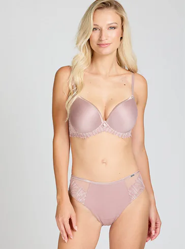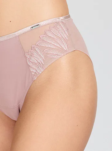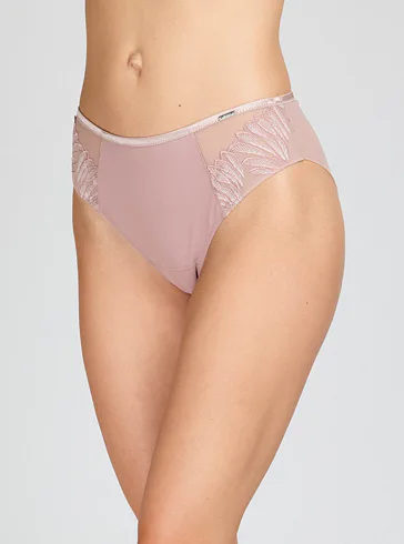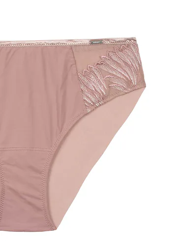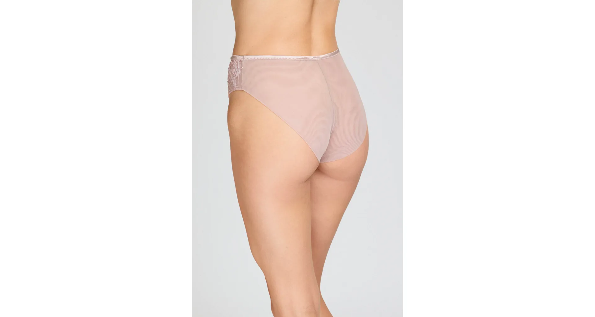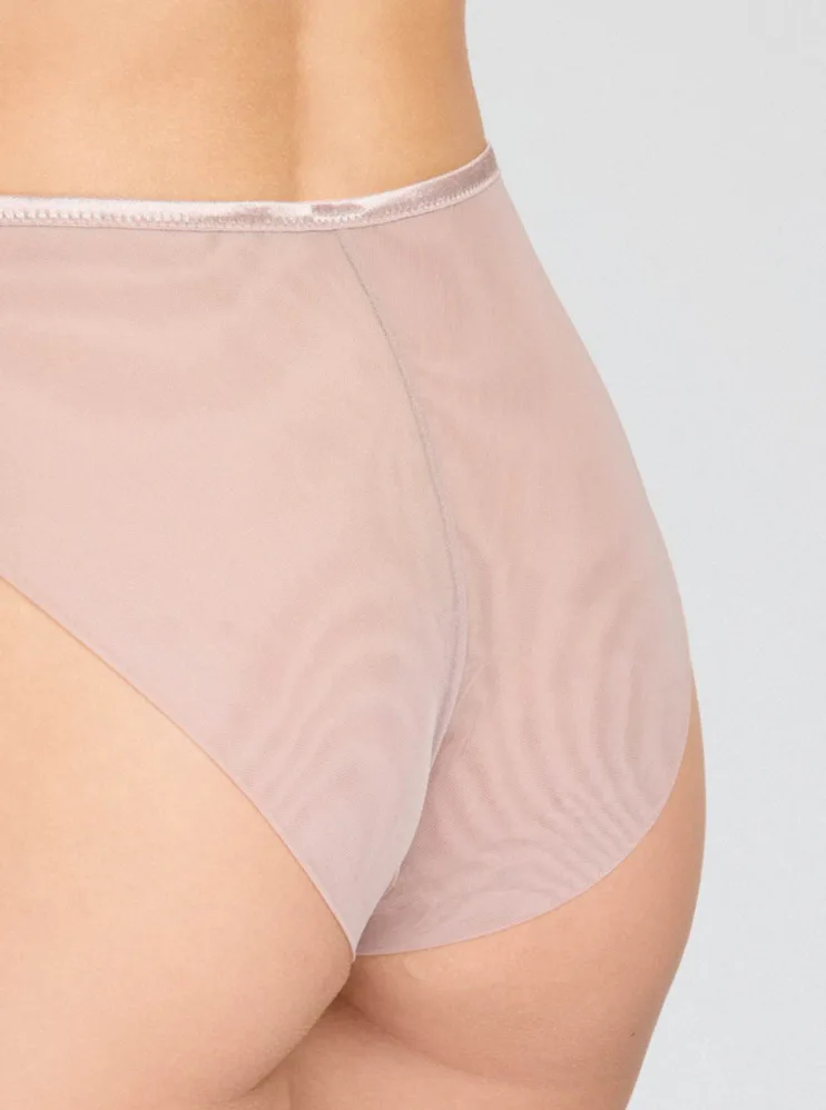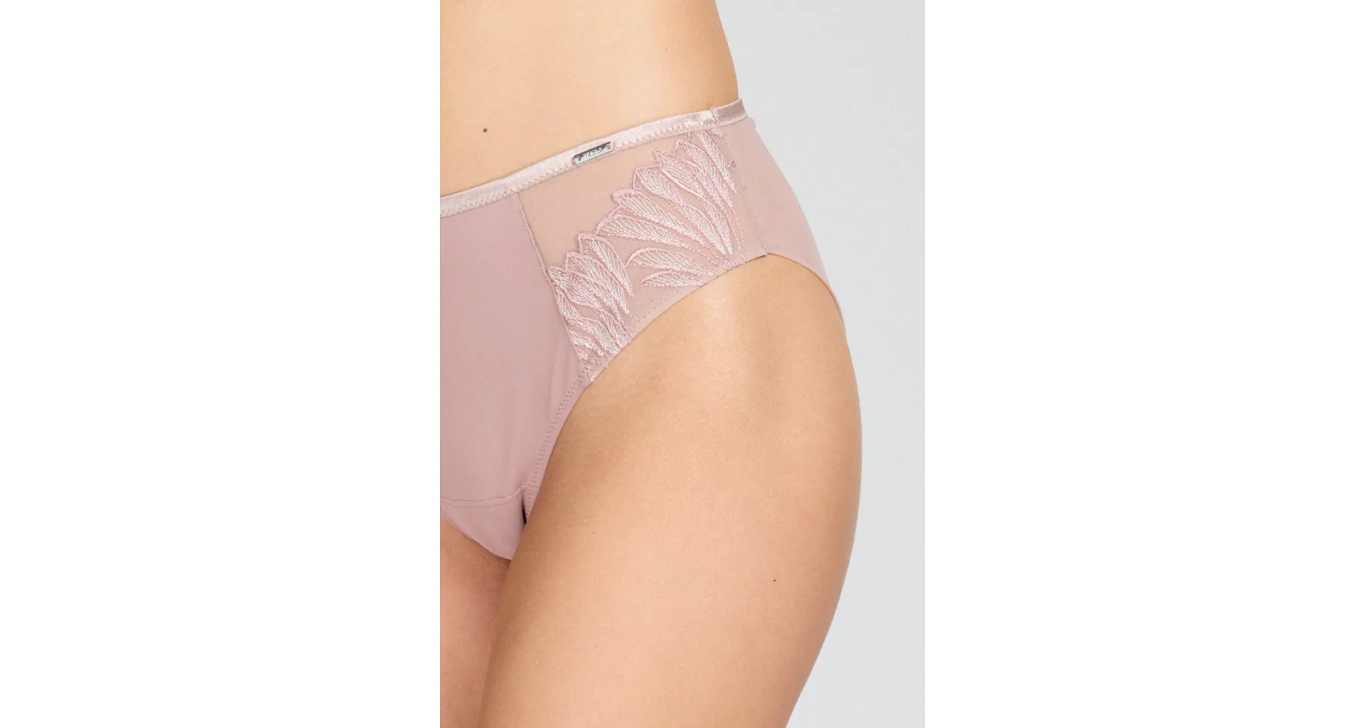 Pohodlie začína pri dokonale padnúcej spodnej bielizni. Nohavičky v klasickom strihu zaisťujú komfort po celý deň. Predný diel zdobí výšivka s lesklými vláknami, ktorá dodáva nohavičkám luxusný vzhľad. Jemný tyl na zadnom diele bez gumičiek vytvára hladkú siluetu.