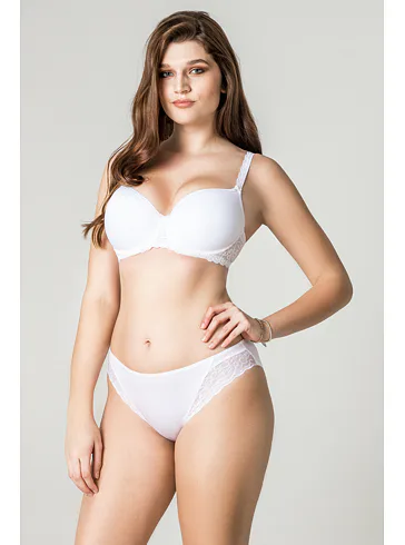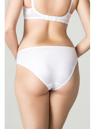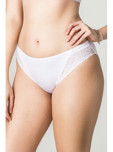 Vsaďte na dokonalú kombináciu pohodlia a elegancie. Dámske klasické nohavičky zdobia dve bočné vsadky z prvotriednej efektnej čipky a zadný diel je úplne hladký. Biele nohavičky perfektne sadnú každej postave a dodajú vám pocit výnimočnosti.