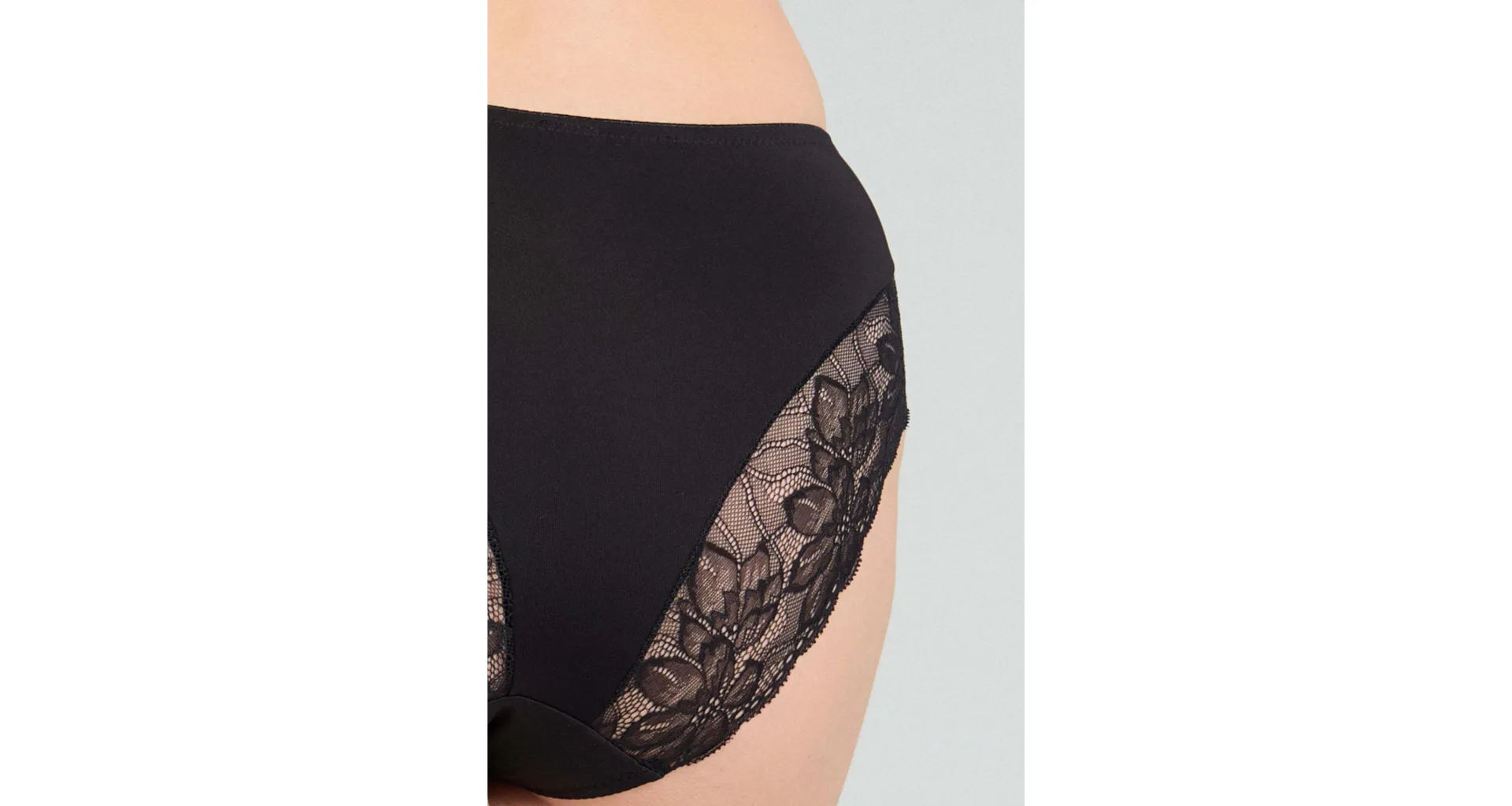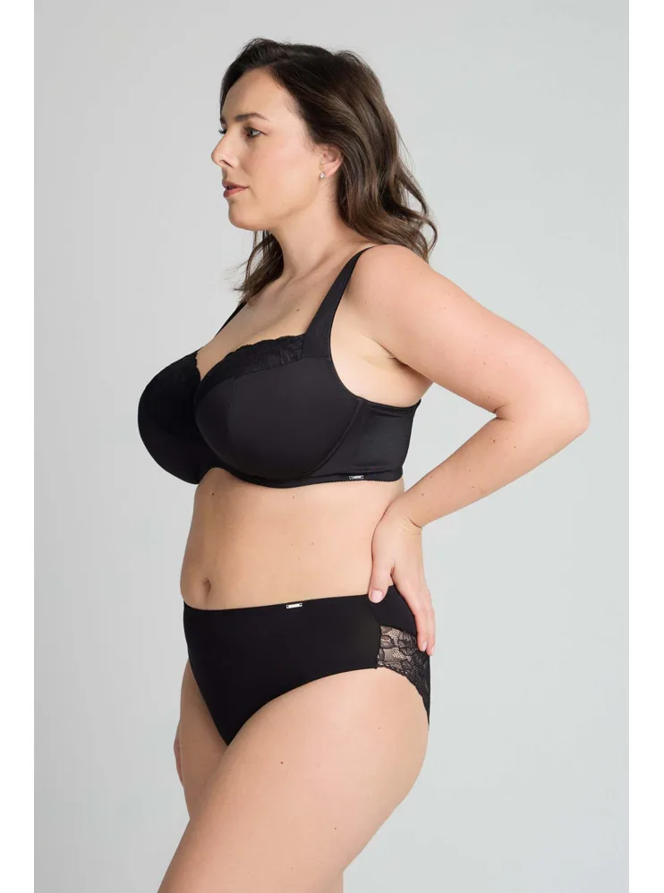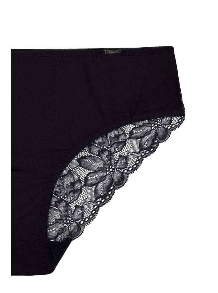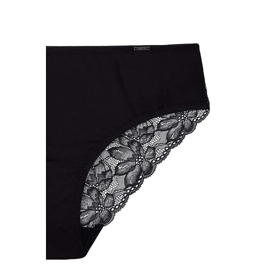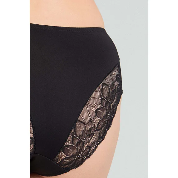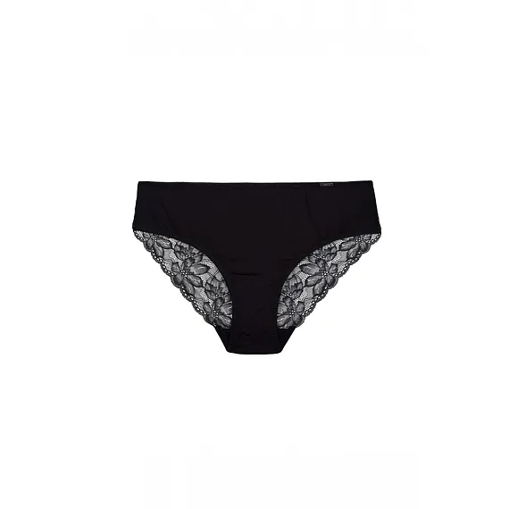 Nohavičky klasického strihu zaujmú čipkovou vsadkou na zadnom diele, ktorá sa nerysuje pod oblečením. Dokonale sadnú a zaistia maximálne pohodlie pri celodennom nosení. Zaobstarajte si nadčasové čierne nohavičky, ktoré nikdy nevyjdú z módy.