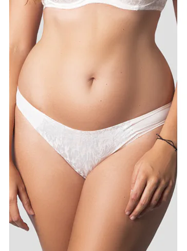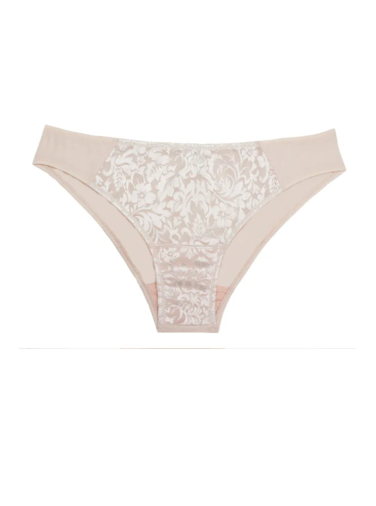 Sexy nohavičky zaujmú romantickou čipkou s kvetinovým vzorom v prednej časti. Vyrobené sú z exkluzívneho žakárového úpletu, ktorý im dodáva luxusný vzhľad. Béžové nohavičky klasického strihu padnú každému typu postavy a zaistia maximálne pohodlie.