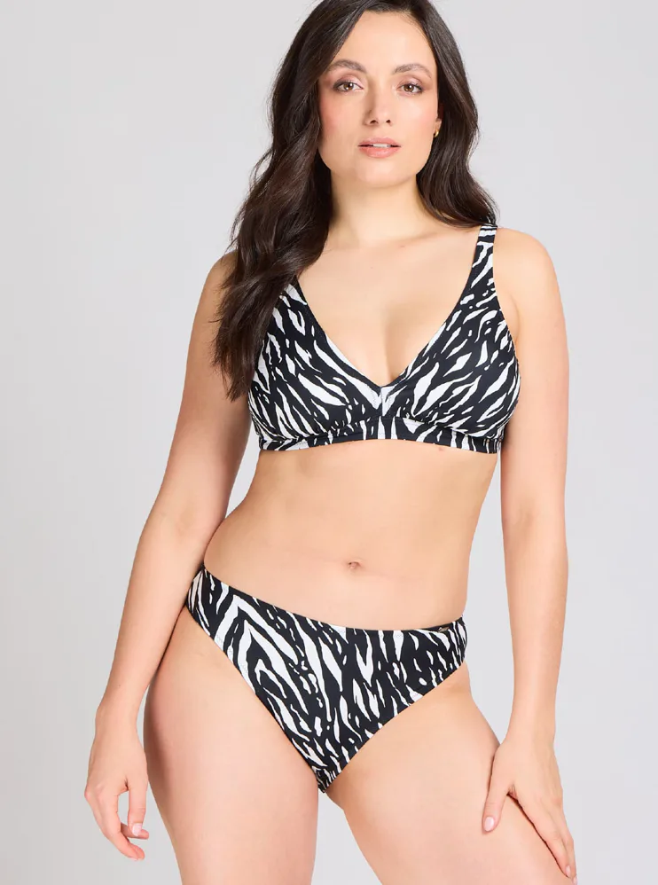 Vyzkoušejte klasické plavkové kalhotky, které upoutají pozornost výrazným černobílým vzorem. Kalhotky dokonale padnou a zvýrazní vaše ženské křivky. Podložený přední díl zajistí maximální neprůhlednost.