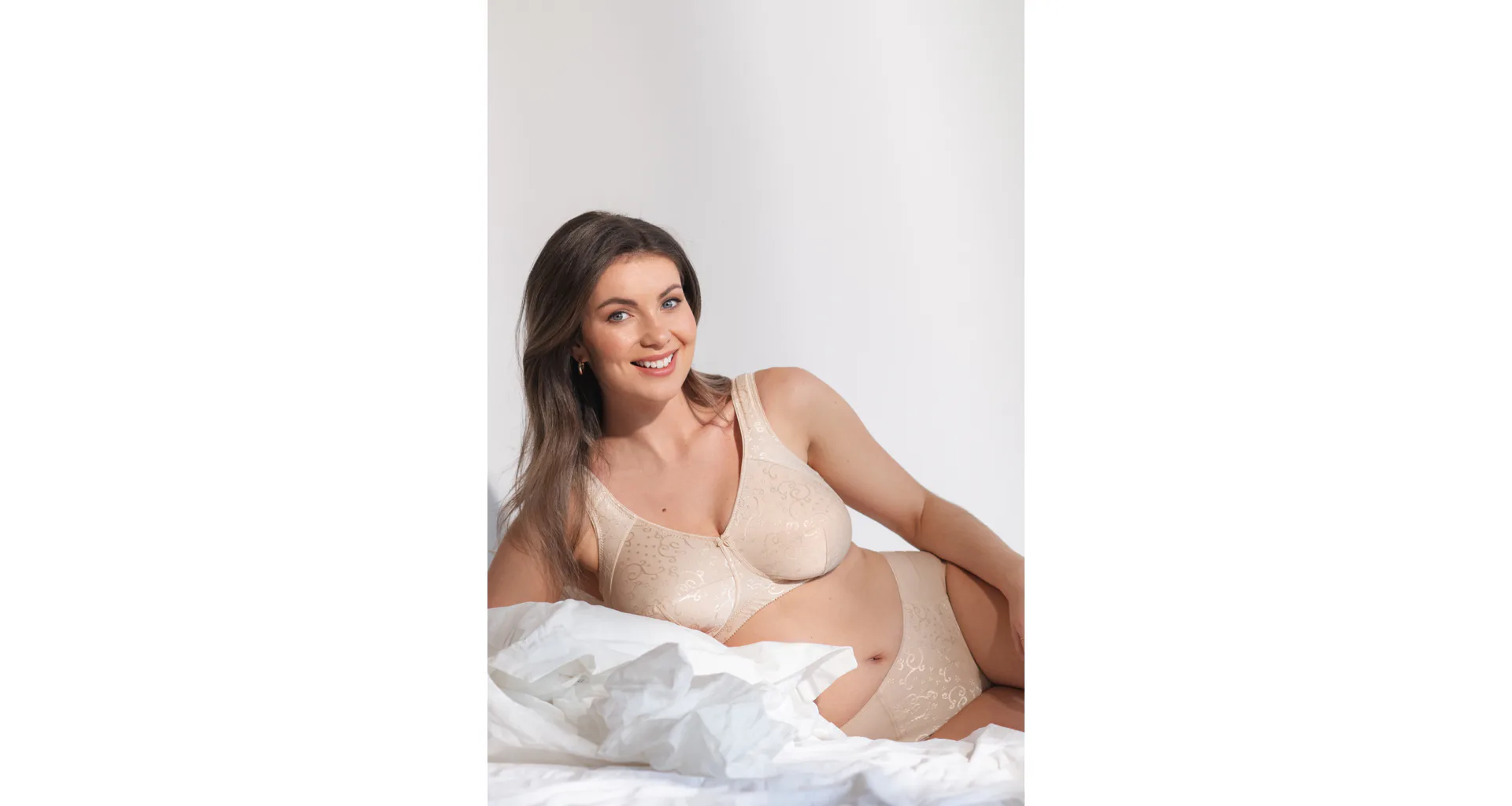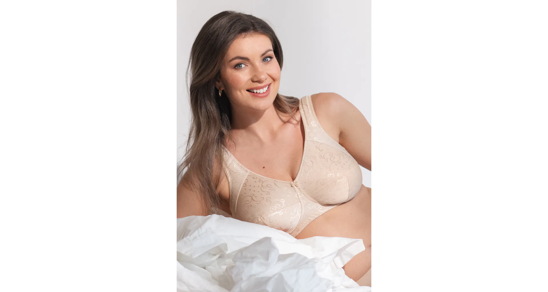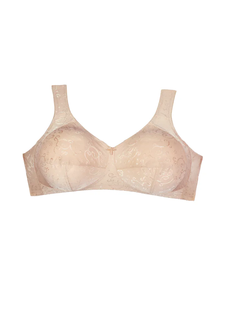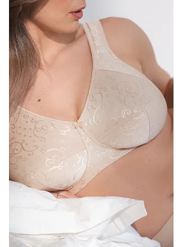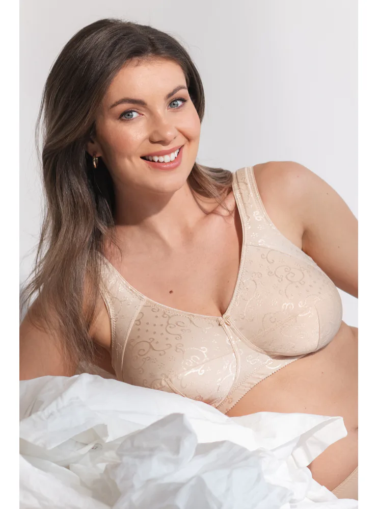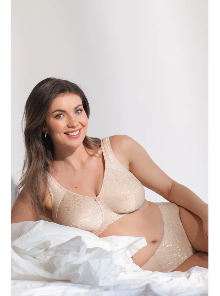 Vyskúšajte pohodlnú podprsenku bez kostíc z jemného úpletu s elegantným žakárovým vzorom. Podčiarkne prirodzený tvar vášho poprsia a poskytne maximálnu oporu bez kompromisov. Samozrejmosťou je zapínanie vzadu na háčiky a nastaviteľné ramienka podľa potreby.