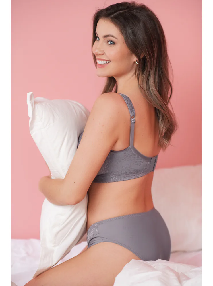 Šedá podprsenka vytvorí krásny dekolt a je perfektná pre každodenné nosenie aj špeciálne príležitosti. Poprsie poskytuje potrebnú oporu a zdôrazní jeho prirodzený tvar. Ramienka je možné nastaviť podľa potreby a zapínanie sa nachádza vzadu na háčiky. Doprajte si výnimočný komfort v spodnej bielizni Triola.