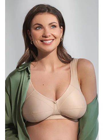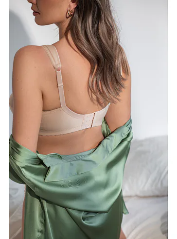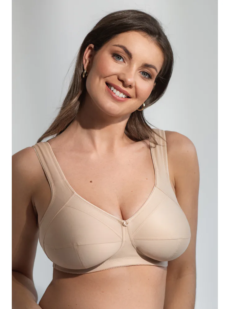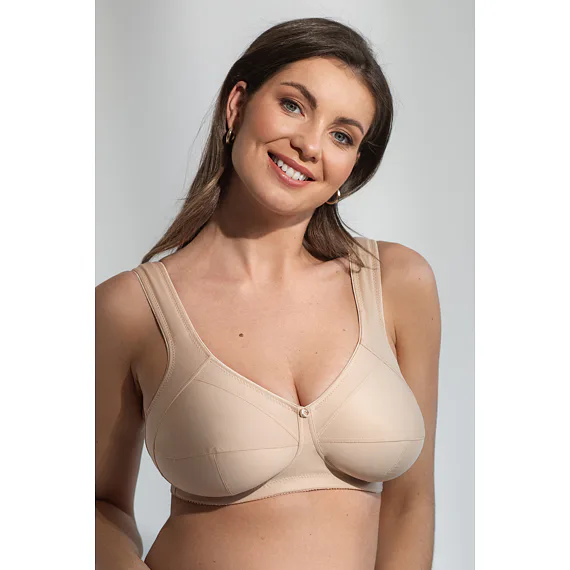 Vyskúšajte kvalitnú podprsenku bez kostíc z hladkého a vysoko komfortného materiálu. T-šev vytvára prirodzene okrúhly tvar poprsia a rozšírené nastaviteľné ramienka zaisťujú celodenné pohodlie. Bočné dieliky upevňujú prsia na stredu.