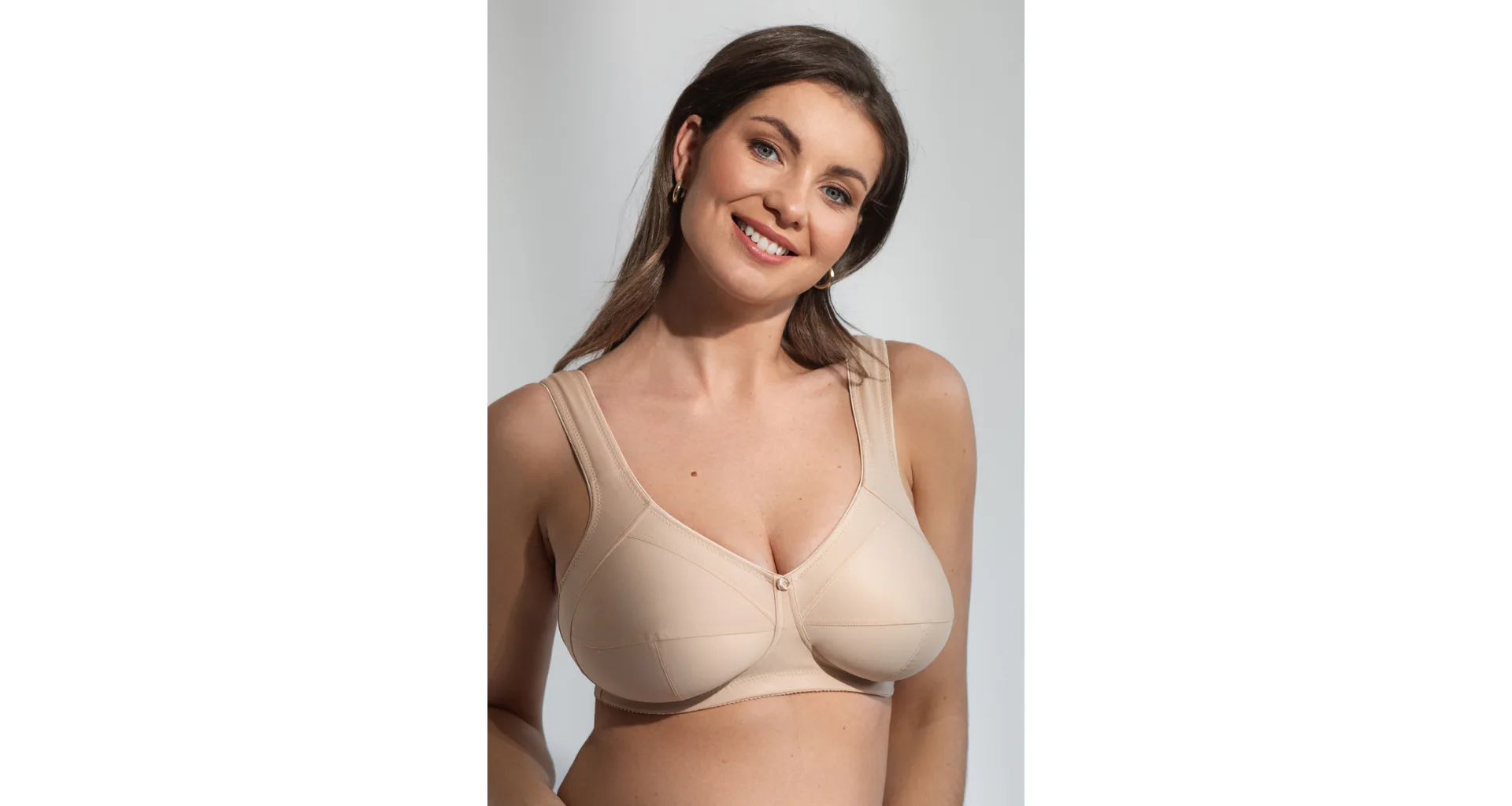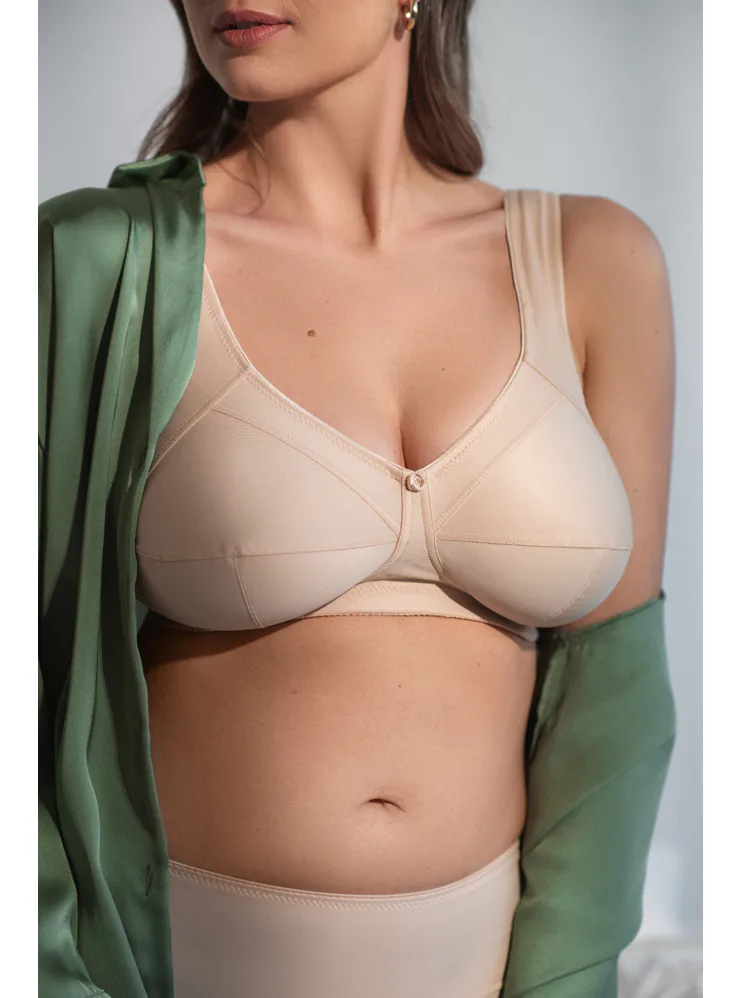 Telová podprsenka upevňuje prsia na stredu, poskytuje voľnosť pohybu a zároveň vás podrží. Zaistí potrebnú oporu a prispôsobí sa vašim krivkám. Má praktické zapínanie vzadu na háčiky. Vhodná pre ženy s väčšími veľkosťami, až do košíčka I.