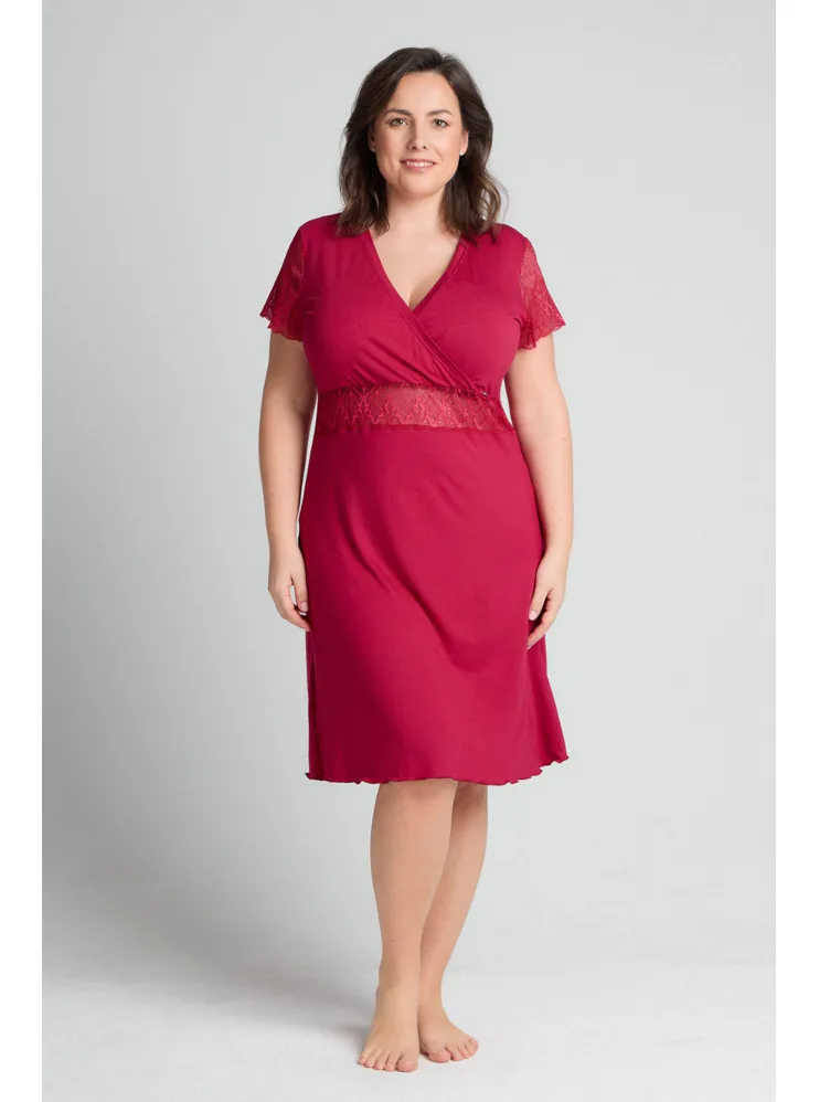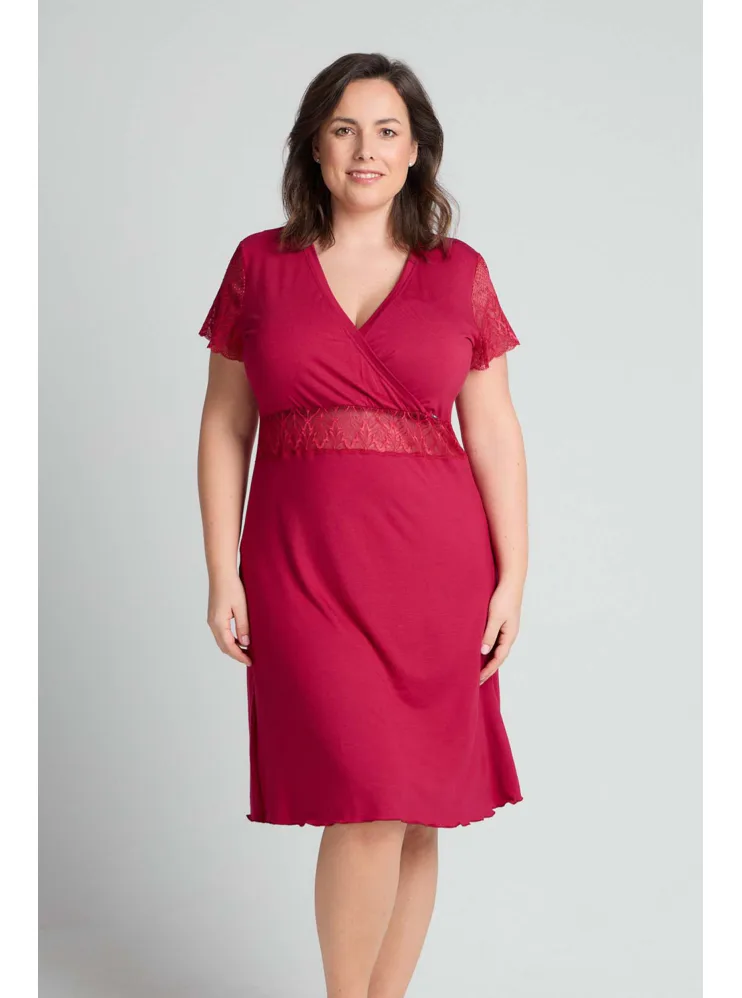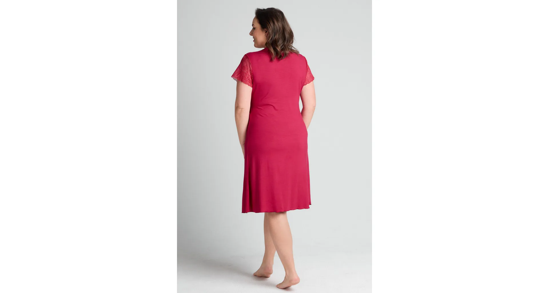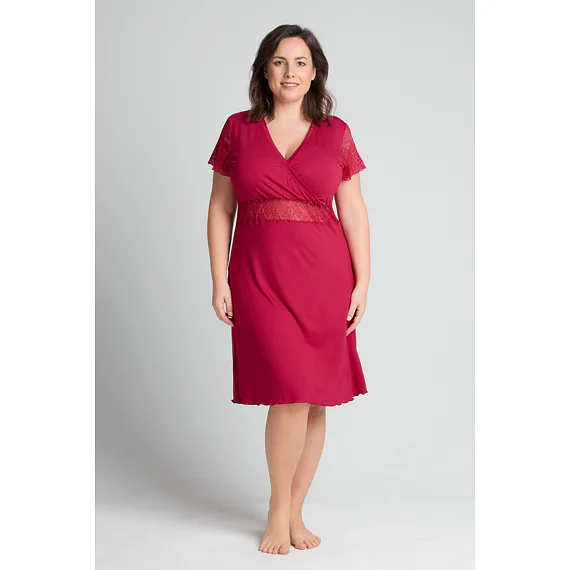 Zmyselne červená nočná košeľa poskytuje vysoký komfort pri nosení. Vďaka mikromodalovému vláknu, ktoré je získané procesom z bukových pilín, vyniká jemnosťou a priedušnosťou. Košeľa s krátkym rukávom a dĺžkou ku kolenám je ideálnou voľbou nielen na spanie, ale aj ako atraktívny domáci odev.