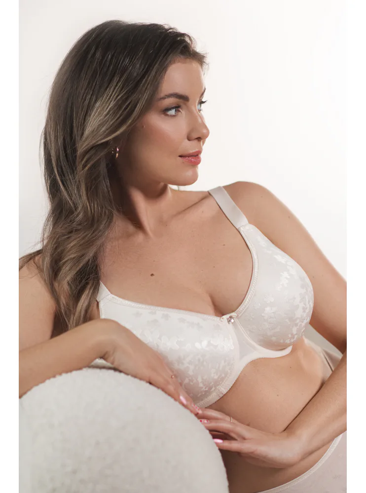Rafinovaná podprsenka s kosticami zaujme lesklým vzorom kvetov. Má hladké tenko vystužené koše, ktoré sa nerysujú pod oblečením. Stred podprsenky zdobí elegantná štrasová ozdoba. Poprsie pozdvihne do ideálnej výšky a zafixuje.