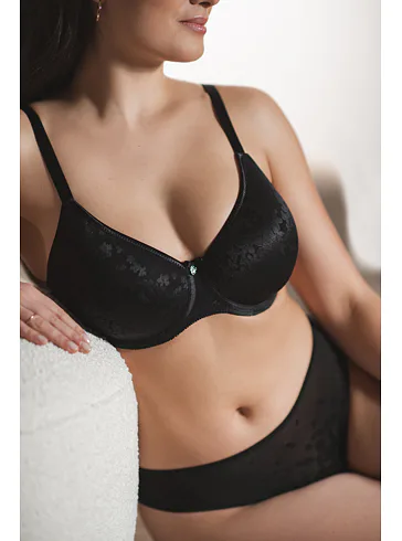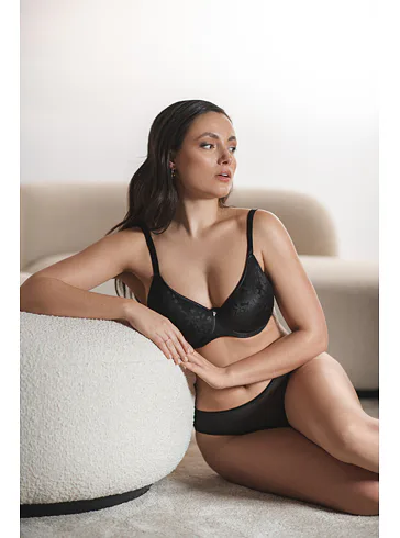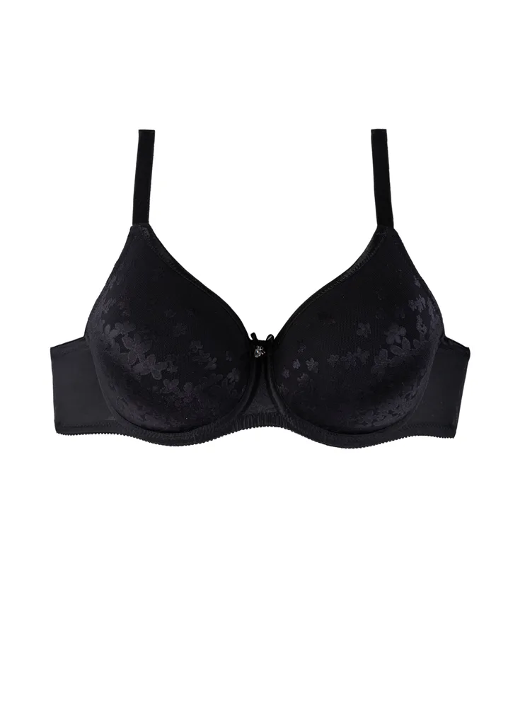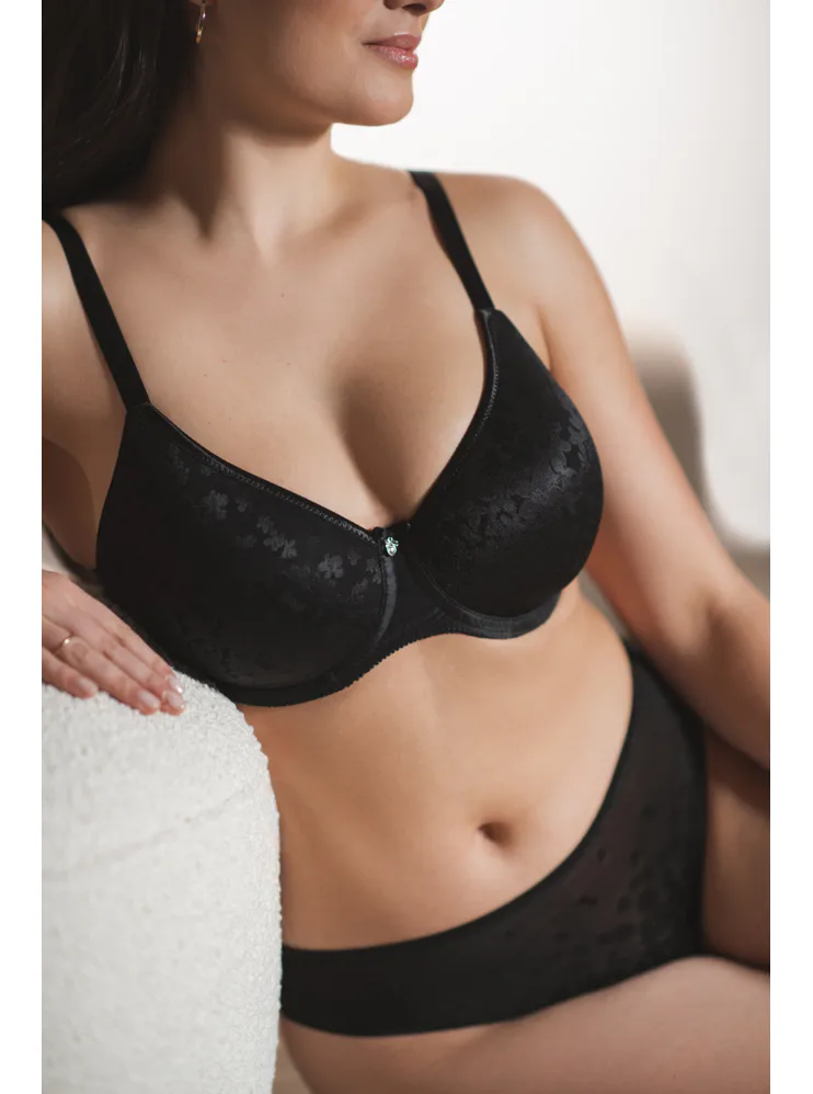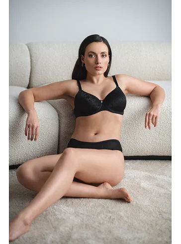 Bezšvová čierna podprsenka má tenko vystužené košíčky, ktoré sa dokonale prispôsobia tvaru vašich pŕs. Všité flexi kostice poskytujú oporu a komfort po celý deň. Má vysoký stred, ktorý je optimálny pre stredné a väčšie veľkosti poprsia. Doprajte si atraktívnu spodnú bielizeň, v ktorej sa budete cítiť sebavedome a pohodlne.