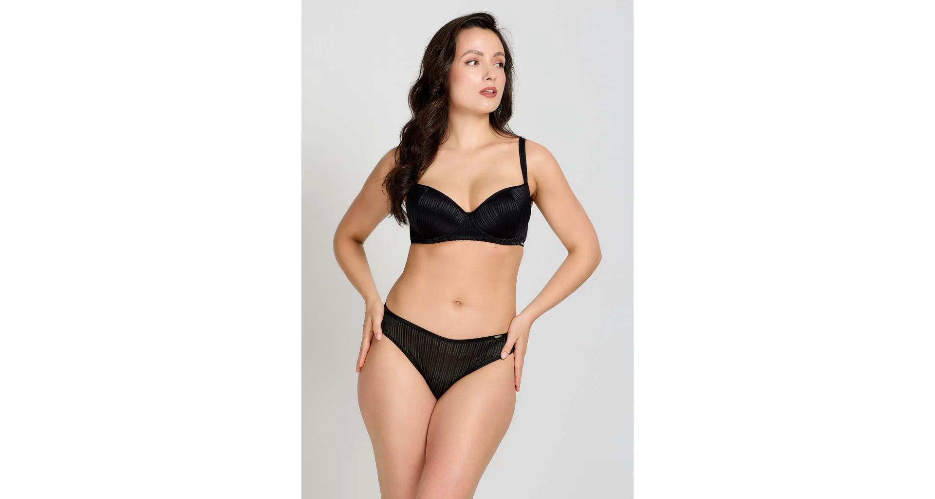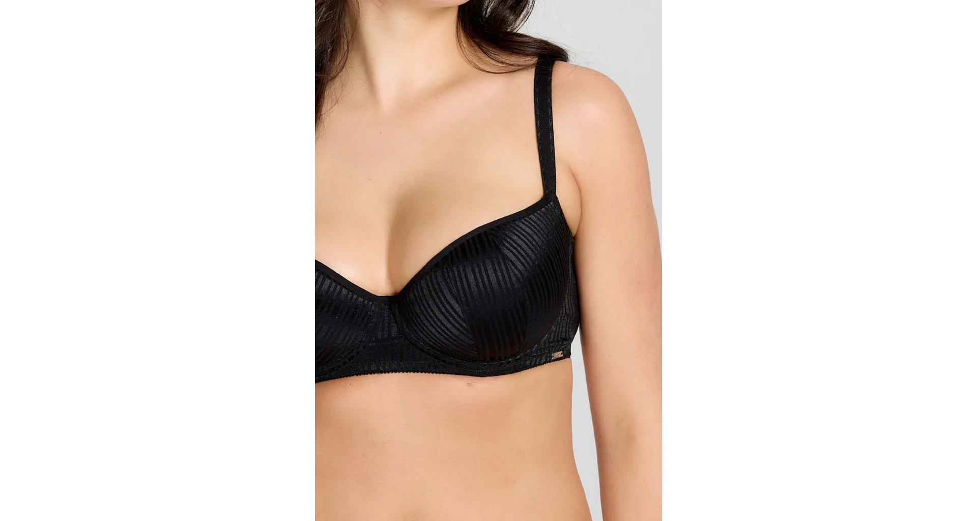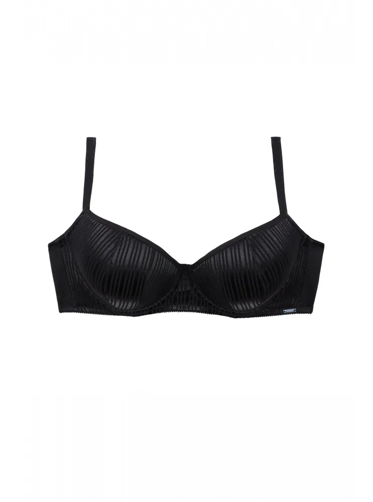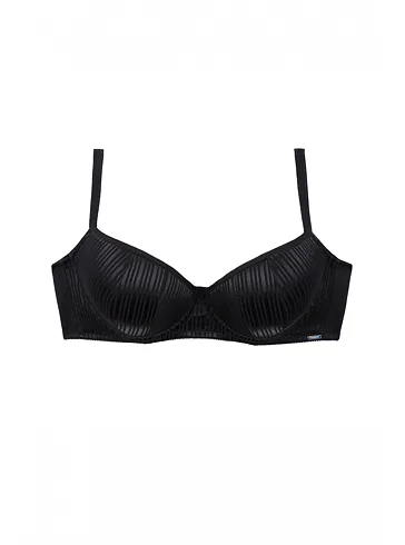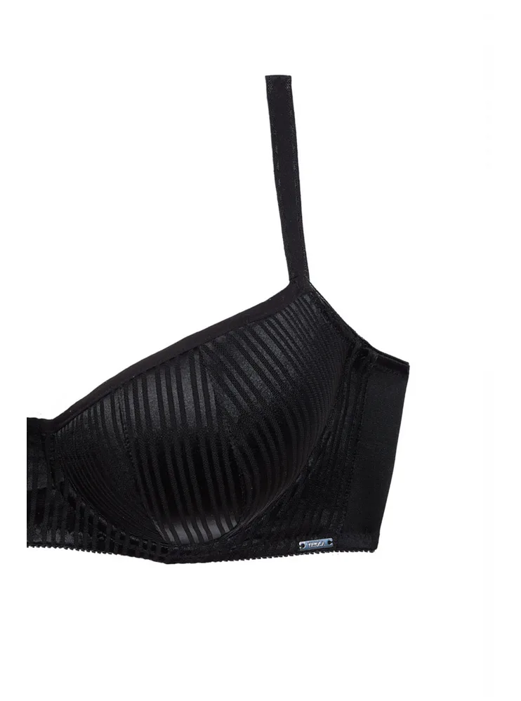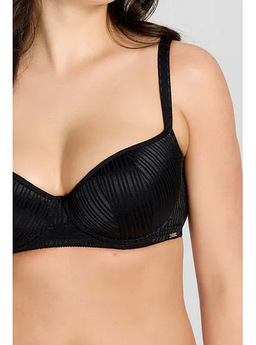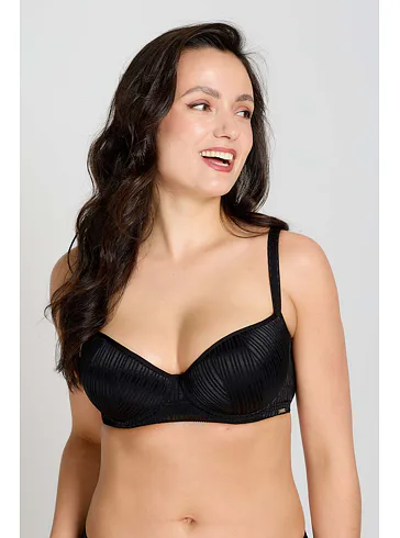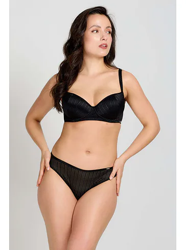 Tenko vystužená balkonetka vytvorí vďaka nízkemu stredu sexy dekolt. Koše podprsenky sú potiahnuté hladkým, luxusným úpletom, ktorý sa nerysuje pod oblečením. Zaujme efektným prúžkovaným vzorom. Ideálna voľba na každodenné nosenie.