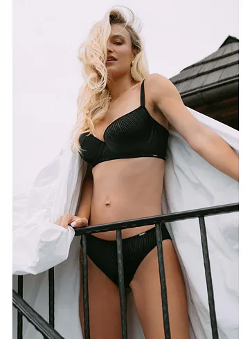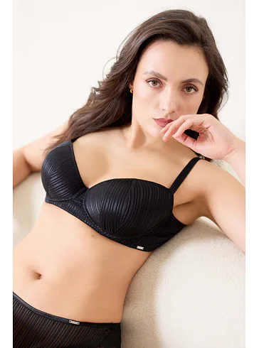Podprsenka v obľúbenom strihu balconette sa dokonale prispôsobí vašim krivkám. Flexi kostice zaistí maximálne pohodlie. Poskytne spoľahlivú oporu a poprsie dodá krásne okrúhly tvar. Má nastaviteľné ramienka a zapínanie vzadu na háčiky. Zaobstarajte si k podprsenke aj čierne nohavičky z limitovanej kolekcie.