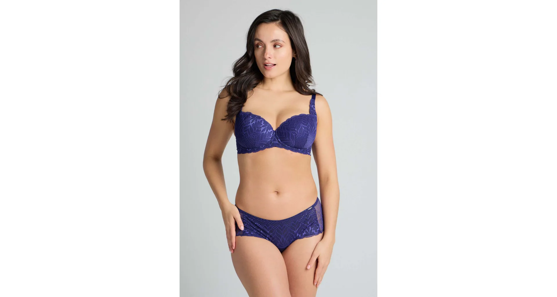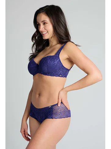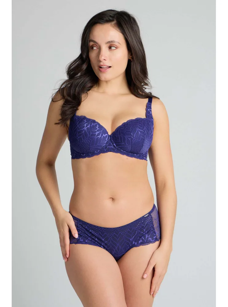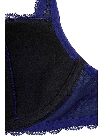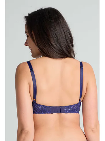 V luxusnej čipkovej podprsenke sa budete cítiť atraktívne a sebavedome. Balcony podprsenka prsia podrží a zaguľatí. Samozrejmosťou sú nastaviteľné ramienka a praktické zapínanie vzadu na háčiky. Zaobstarajte si k podprsenke v kráľovsky modrej farbe aj nohavičky z rovnakého setu.