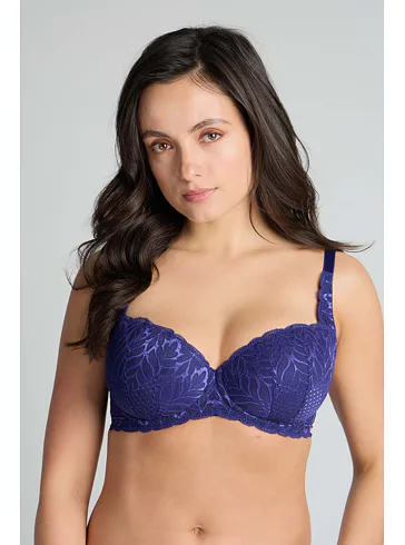 Získajte neodolateľný dekolt v tmavo modrej podprsenke balkónového strihu. Flexi kostice sa prispôsobia pohybu vášho tela a poskytnú spoľahlivú oporu. Očarí vás nežnou čipkou a fialovými odleskami. Doprajte si dokonale padnúcu podprsenku Triola.