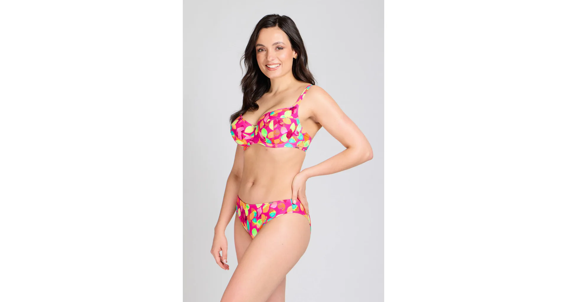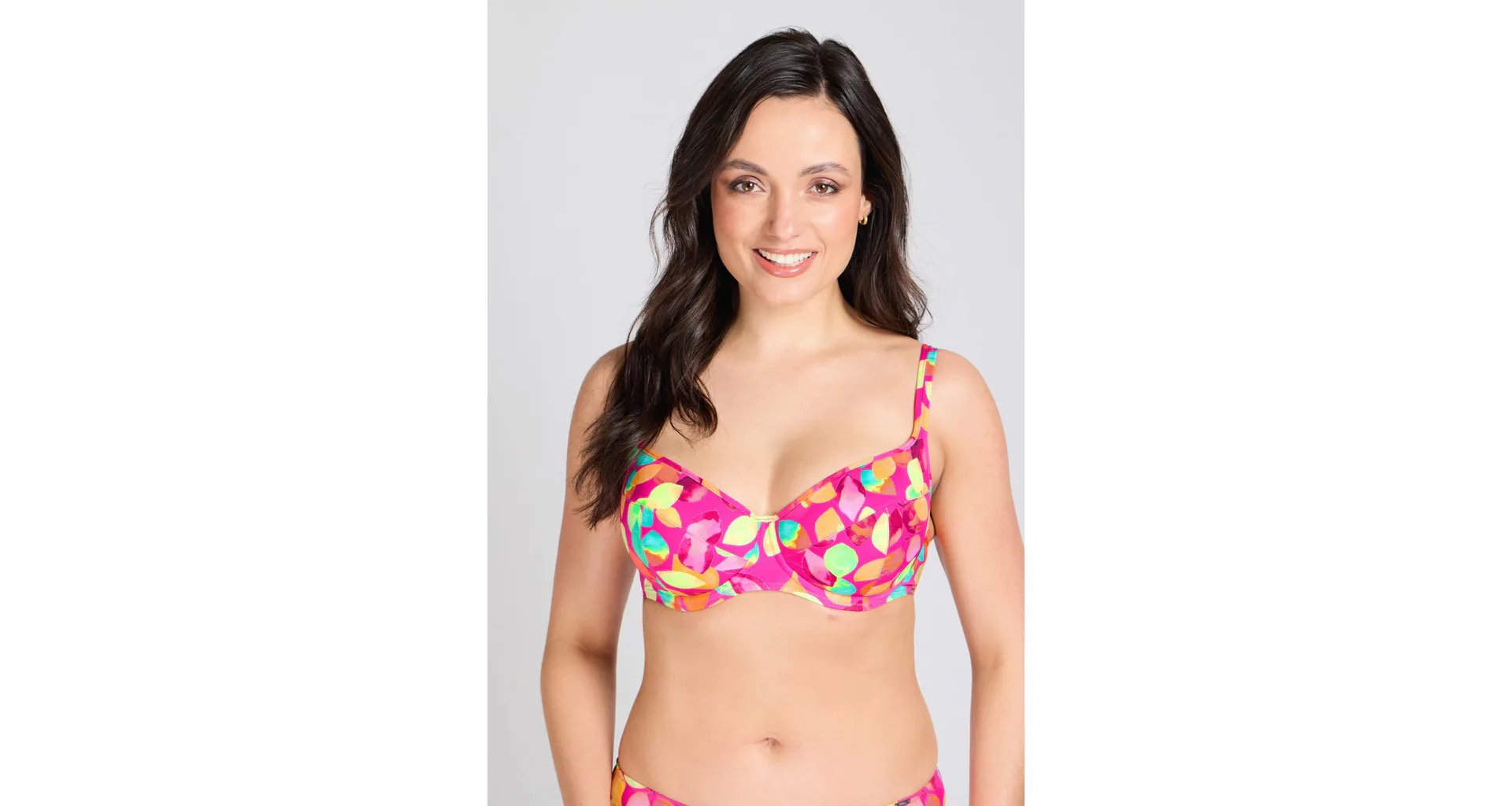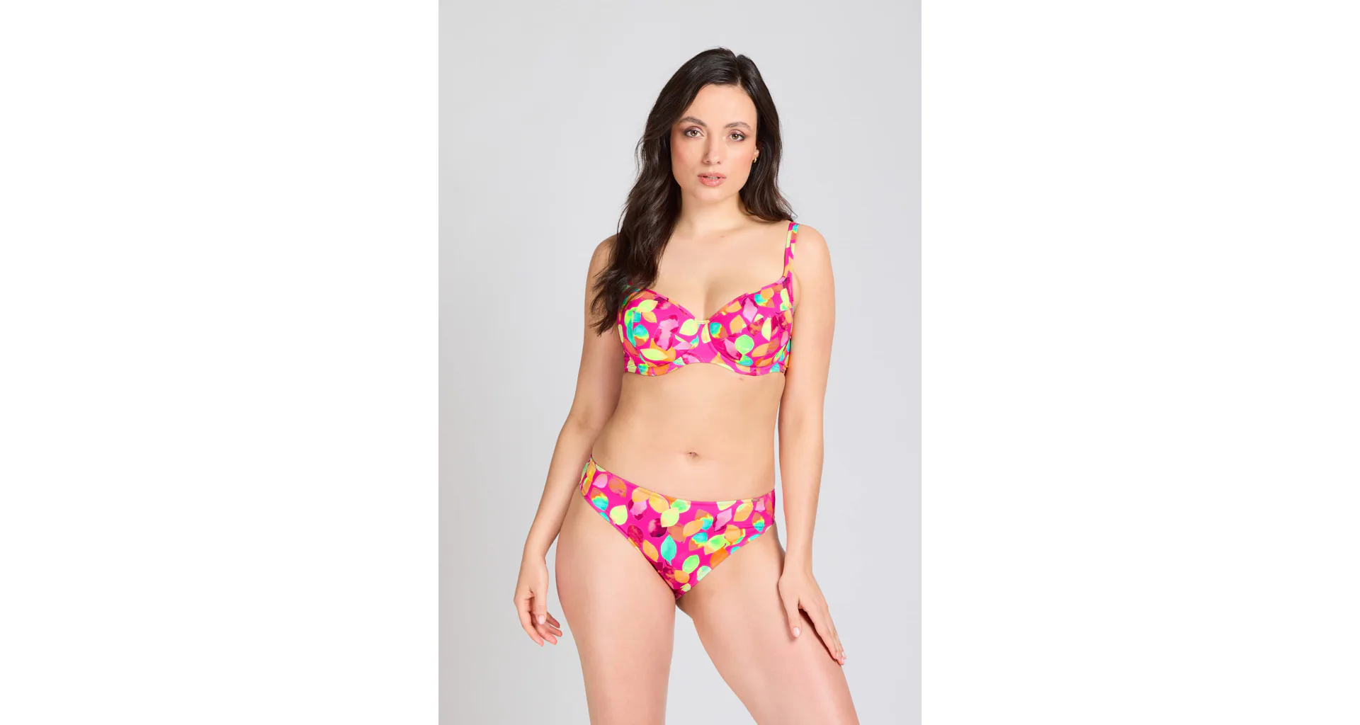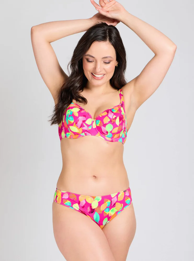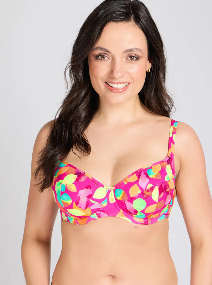 Vykročte do leta 2026 s novou kolekciou Triola. Plavková podprsenka s kosticami v strihu T-Fit vytvorí zvodný a prirodzene okrúhly dekolt. Vysoký stred udrží prsia pevne na svojom mieste. Zaujme výrazným, hravým dizajnom plným farieb.