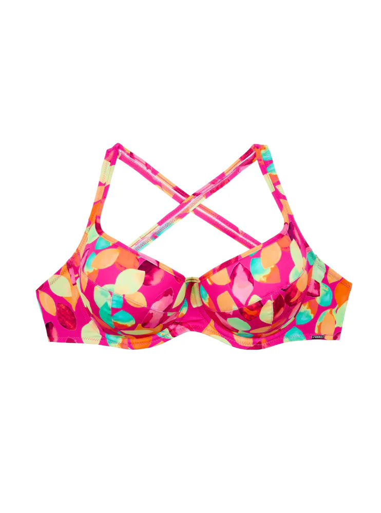 Plavková podprsenka poskytne potrebnú oporu a podčiarkne vaše prirodzené krivky. Zaobstarajte si plavky, ktoré vaše prsia pevne zafixujú. Podprsenka má variabilné ramienka, ktoré zapnete klasicky, do kríža alebo zaviažete za krkom. Horný diel plaviek môžete ľubovoľne kombinovať s akýmkoľvek spodným dielom.