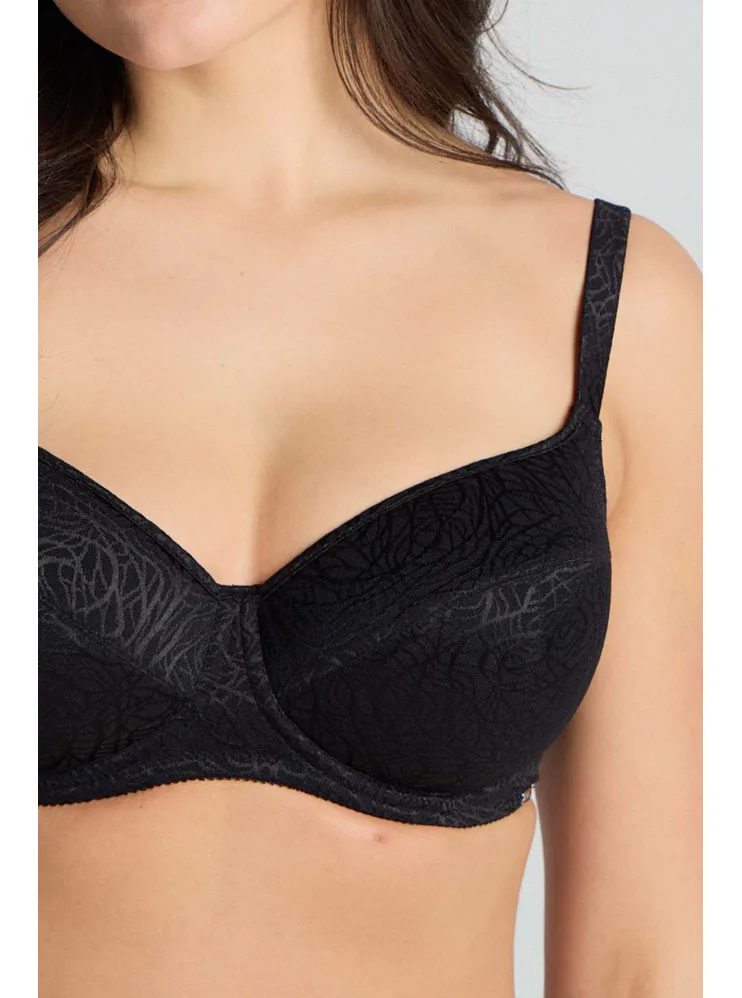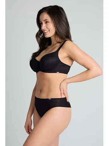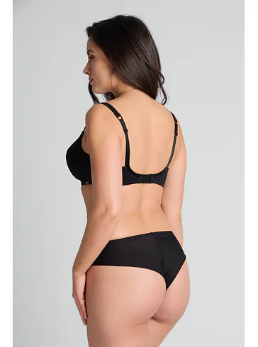Podprsenka v nadčasovej čiernej farbe je základom každého dámskeho šatníka. Tenko vystužená podprsenka predstavuje spojenie komfortu, elegancie a precízneho spracovania. Má praktické zapínanie vzadu na háčiky a potiahnuté nastaviteľné ramienka. Podprsenka s vyšším stredom vaše prsia pevne zafixuje.
