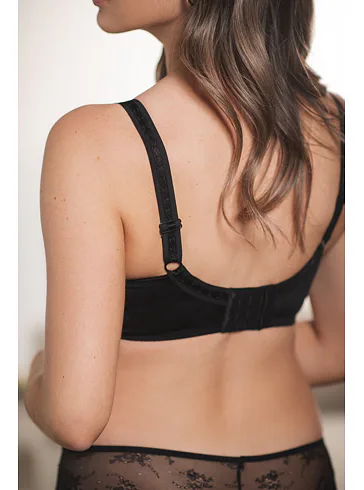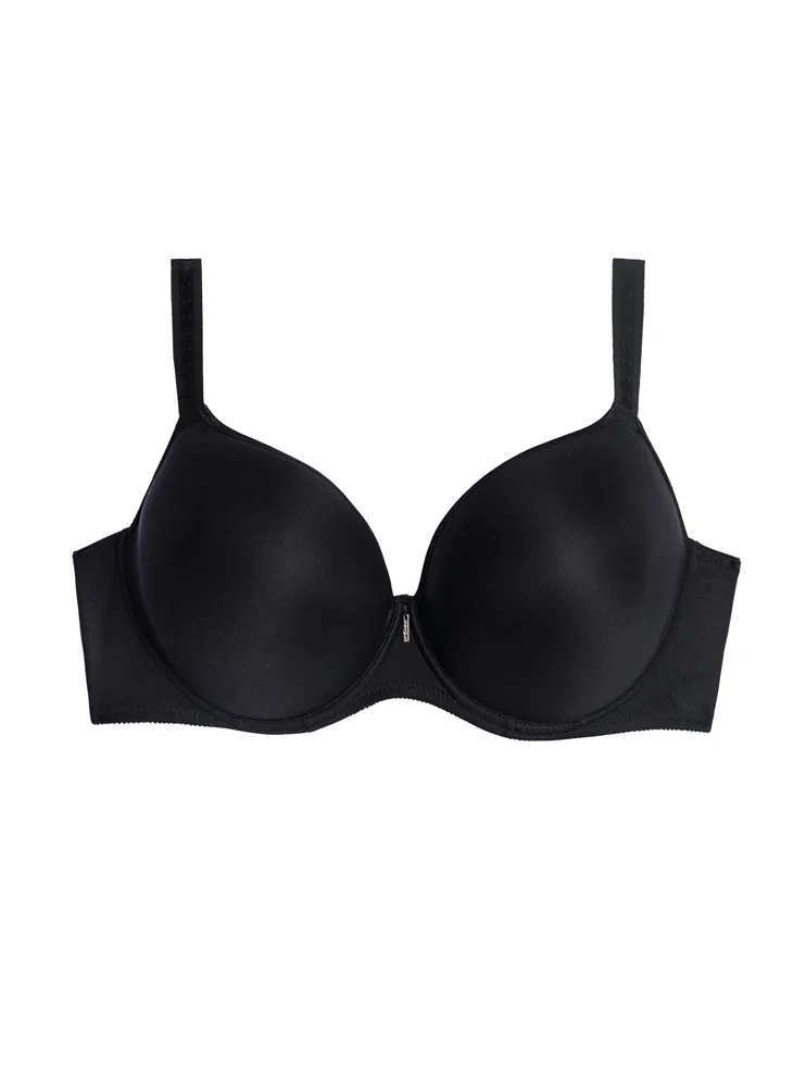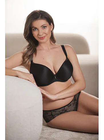 Čierna podprsenka zafixuje poprsie na strede a vykúzli neodolateľný dekolt. Všité kostice poskytujú potrebnú oporu a nijako neobmedzujú v pohybe. Samozrejmosťou sú pohodlné nastaviteľné ramienka a pevný obvod. Hladké koše sa nerysujú pod oblečením. Skvelá voľba na každodenné nosenie.