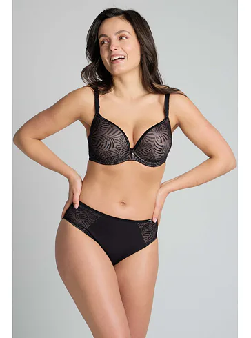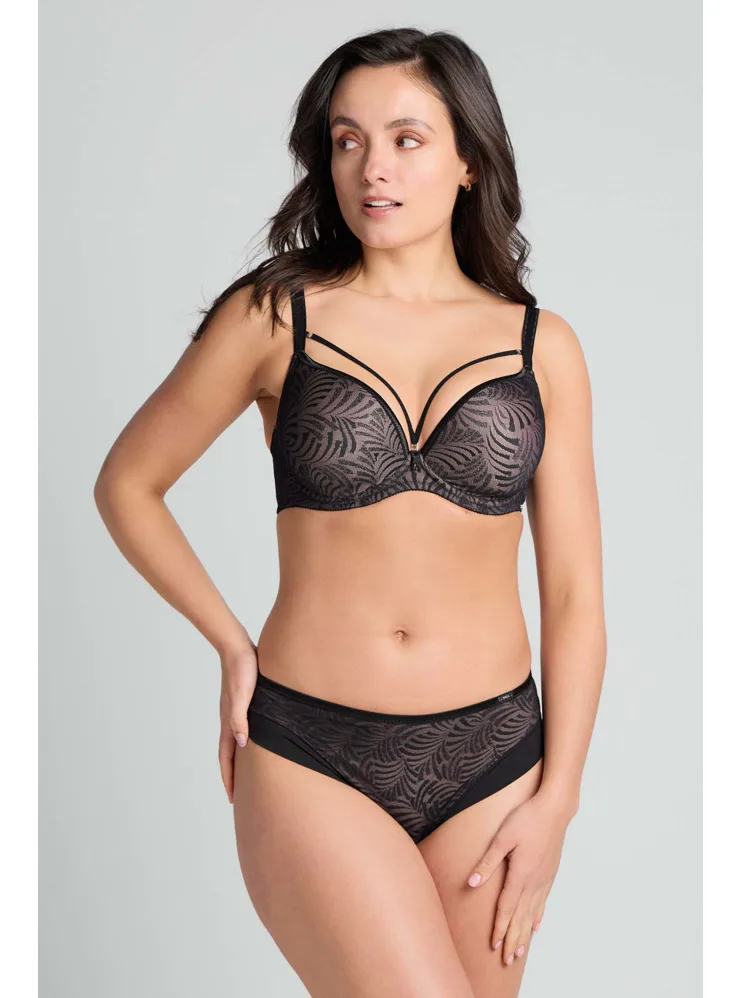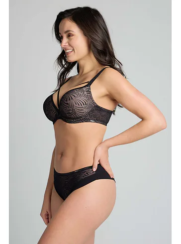 Vysoko atraktívna podprsenka je vhodná do hlbokých výstrihov. Kostice poskytnú potrebnú oporu a dokonale sa prispôsobia vášmu pohybu. Tenko vystužená podprsenka s nízkym stredom zaistí dokonalý komfort pri celodennom nosení. Zaobstarajte si k podprsenke aj nohavičky a získajte kompletný set.