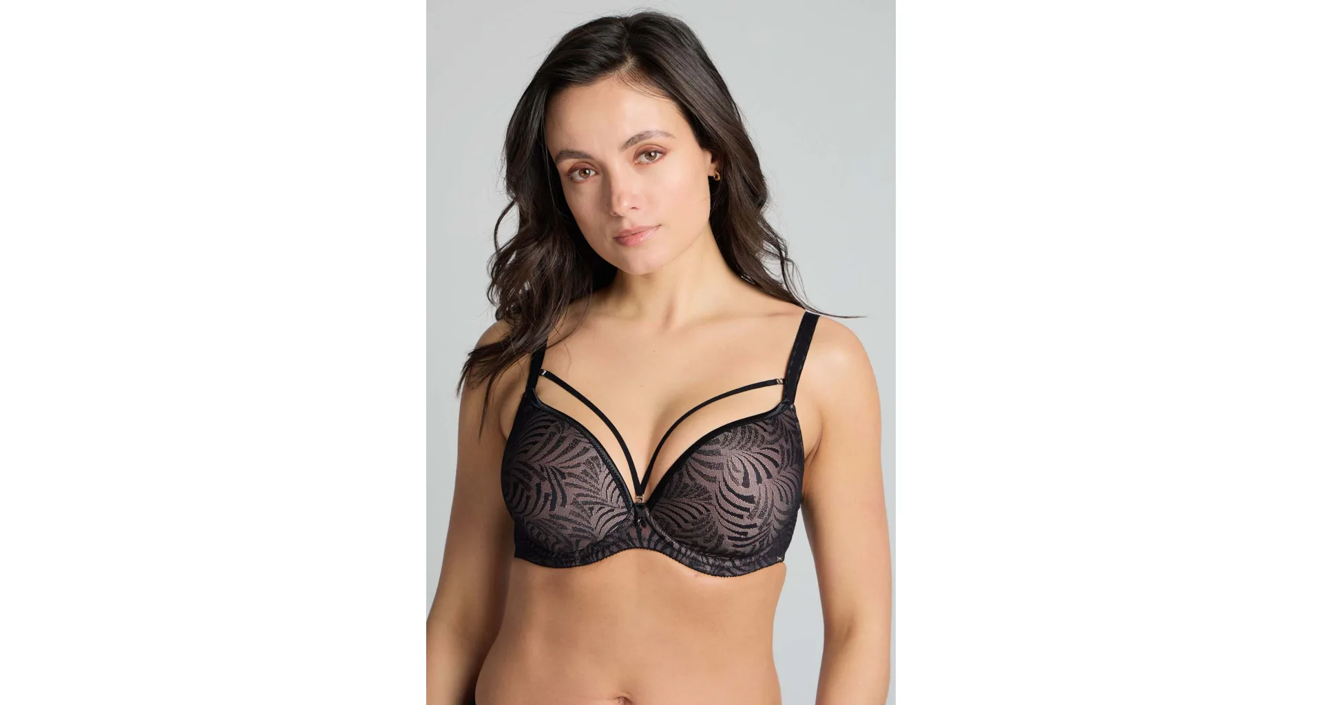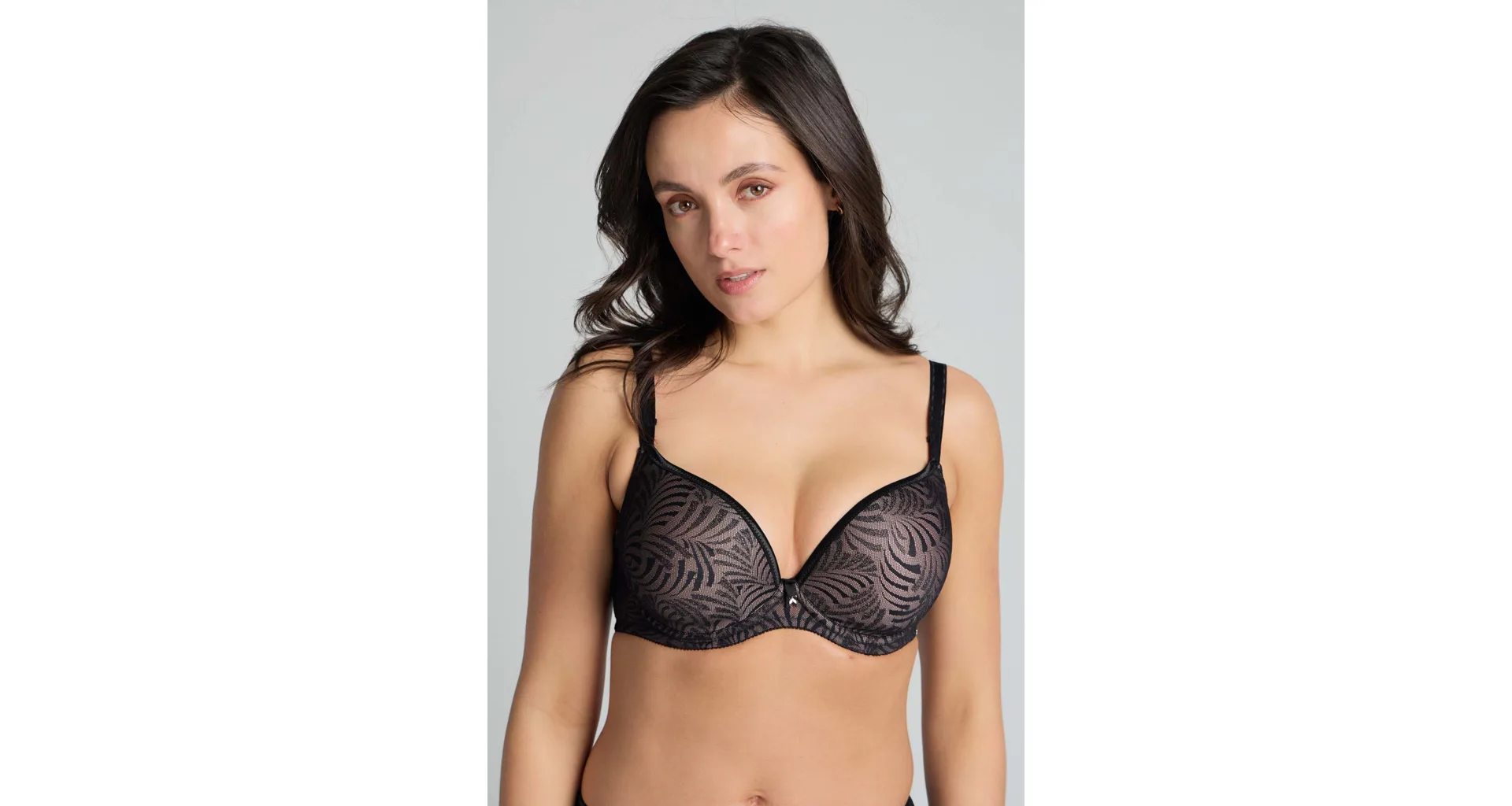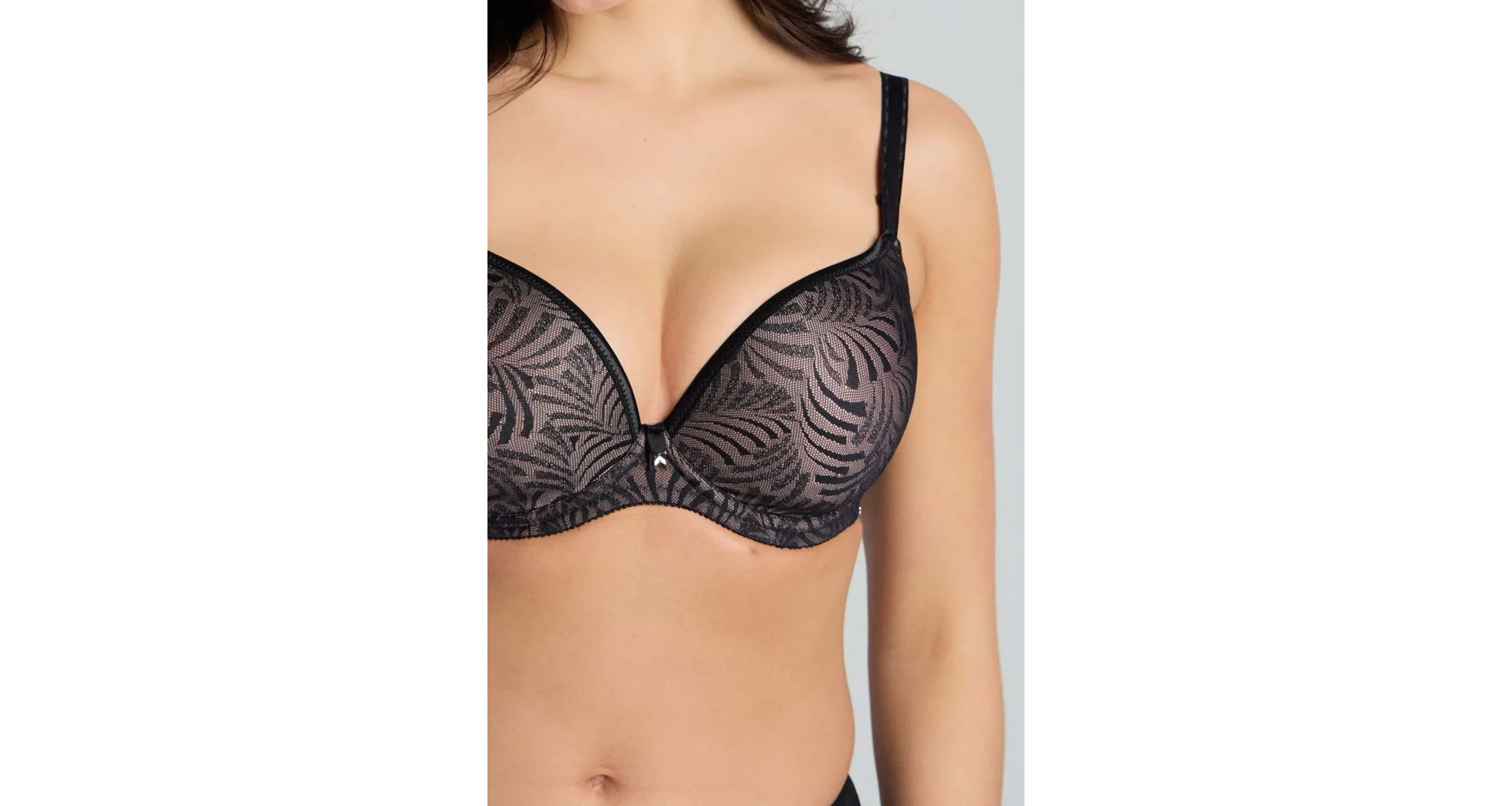 Podprsenka upúta pozornosť k vášmu neodolateľnému dekoltu. Odopínacie pásky vo výstrihu dodávajú modelu zmyselný a rafinovaný vzhľad. Hladké bezšvové koše sú potiahnuté jemným úpletom, ktorý sa nerysuje pod oblečením.