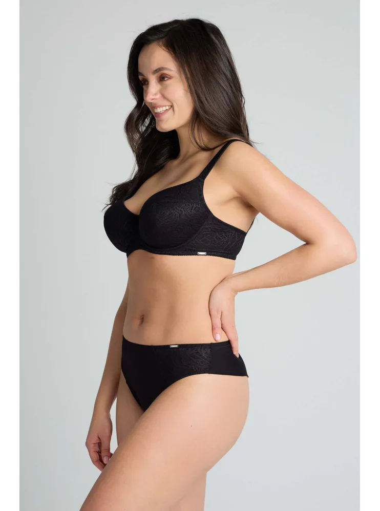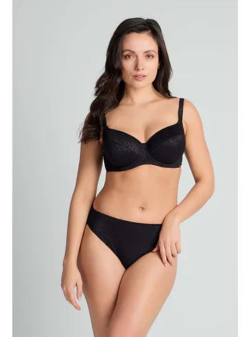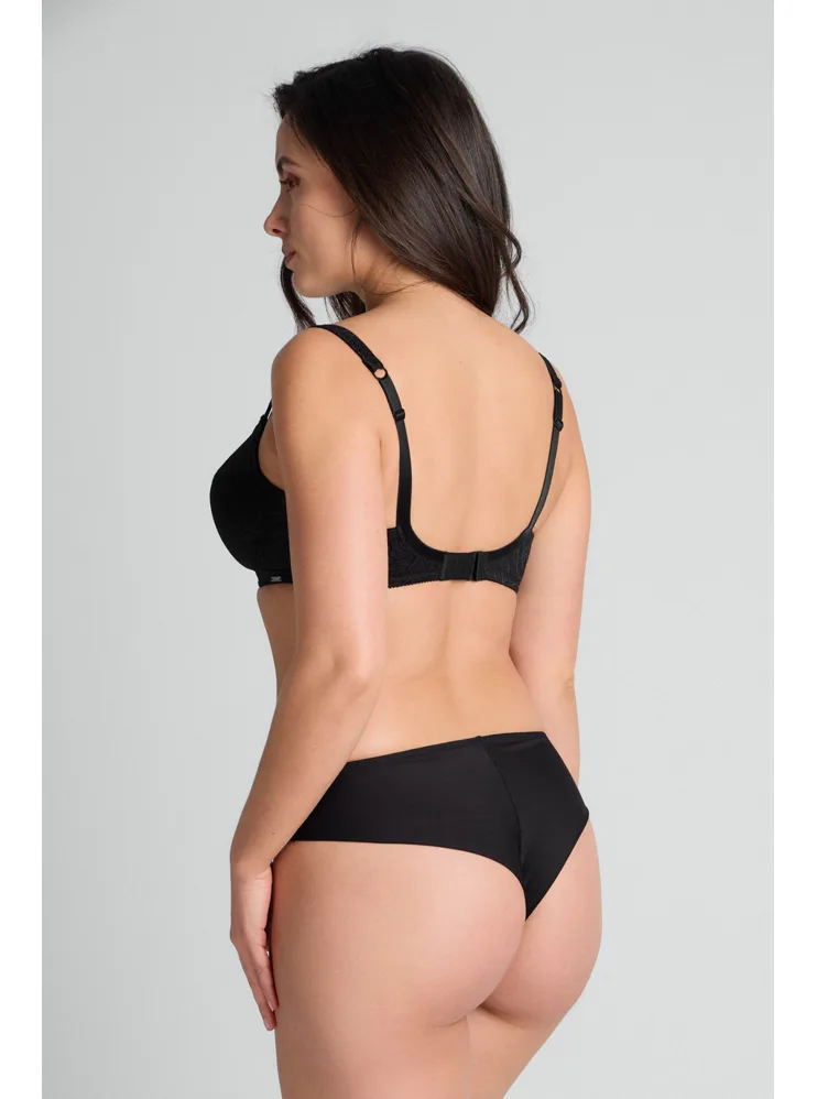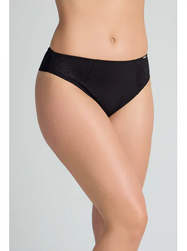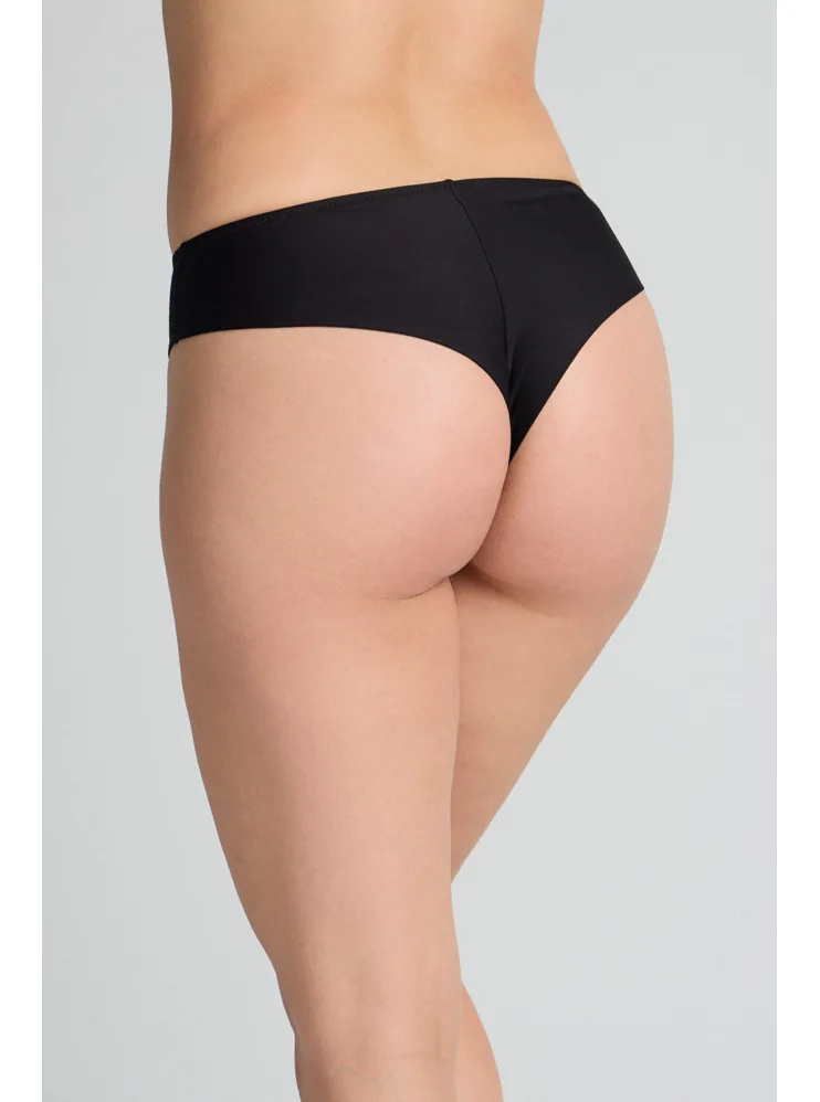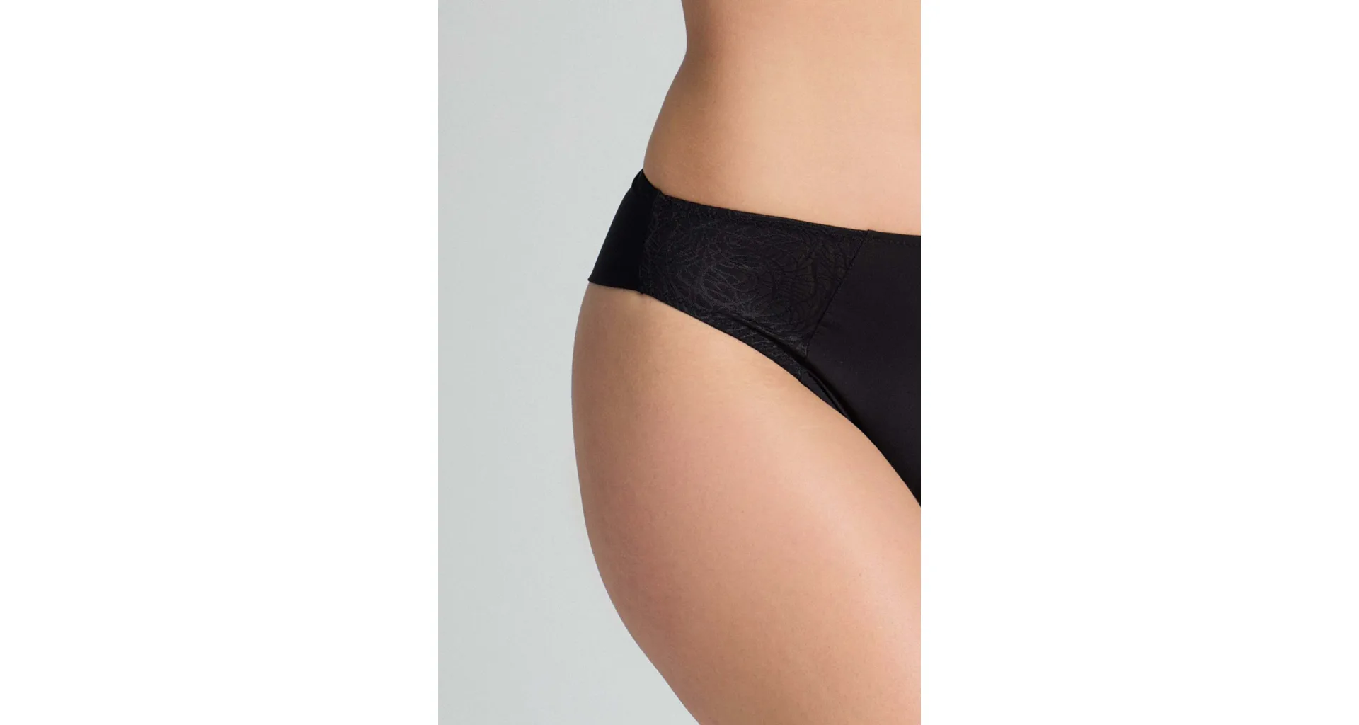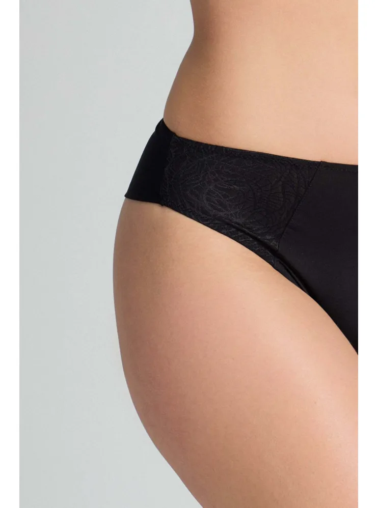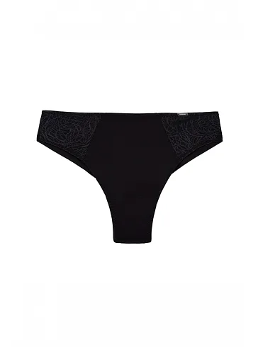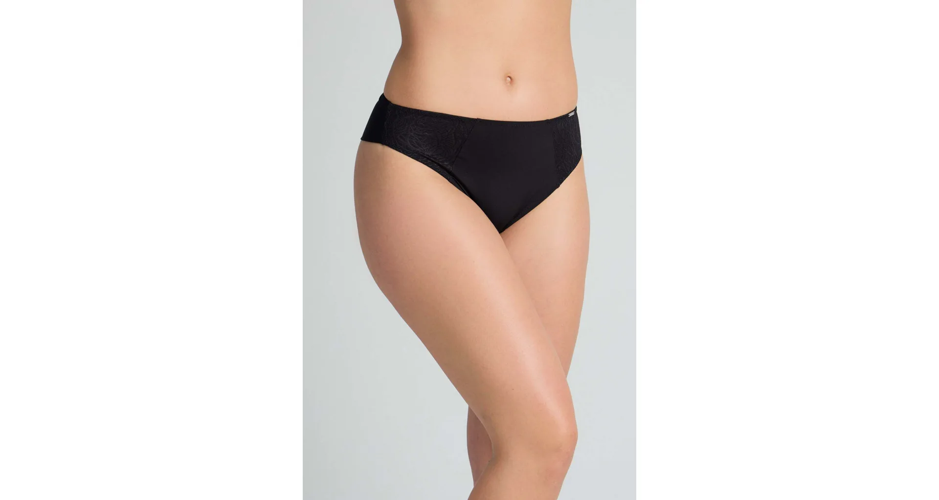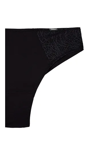 Brazilky majú hladký zadný diel, ktorý sa nerysuje pod oblečením. Predný diel zdobí úplet s lesklými motívmi. Vysoký pás schová problematickú oblasť bruška a opticky predĺži nohy. V brazílkach sa budete cítiť komfortne a sebavedome.
