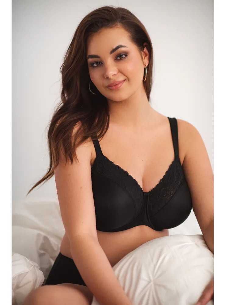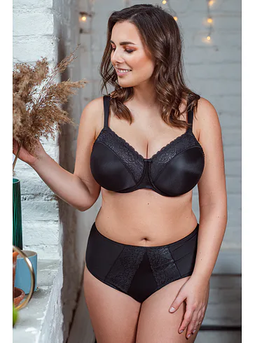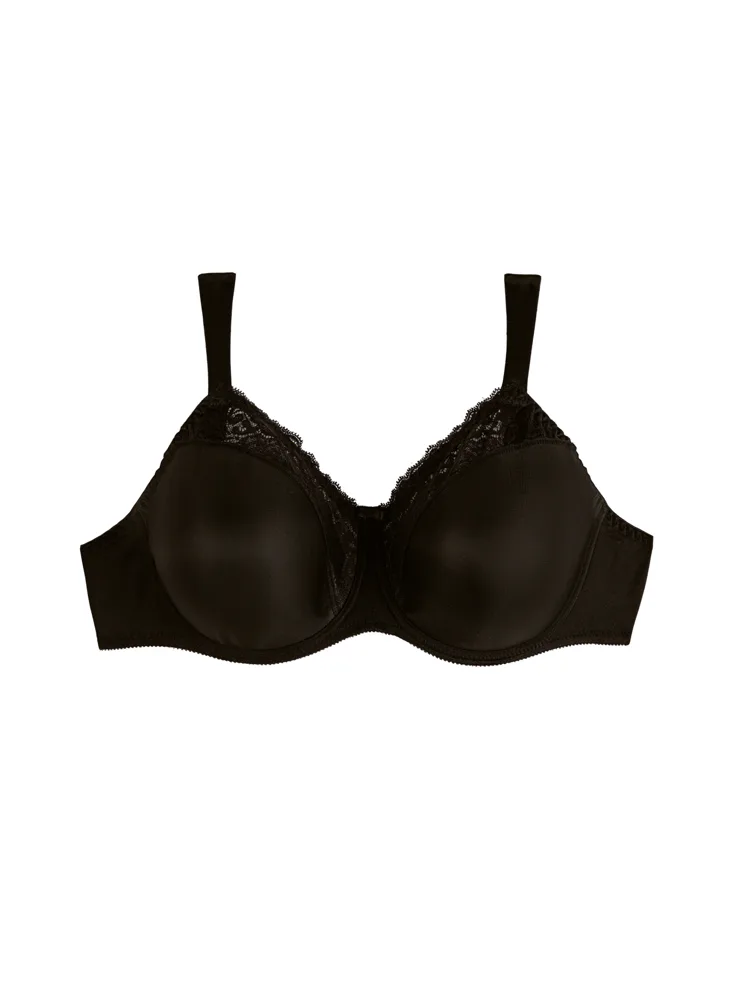 Nevystužená podprsenka opticky zmenší poprsie až o jednu veľkosť. Zaujme čipkovými detailmi na hornej línii košíčkov, ktoré jej dodávajú romantický vzhľad. Čierna podprsenka poskytne spoľahlivú oporu a komfort pri celodennom nosení.