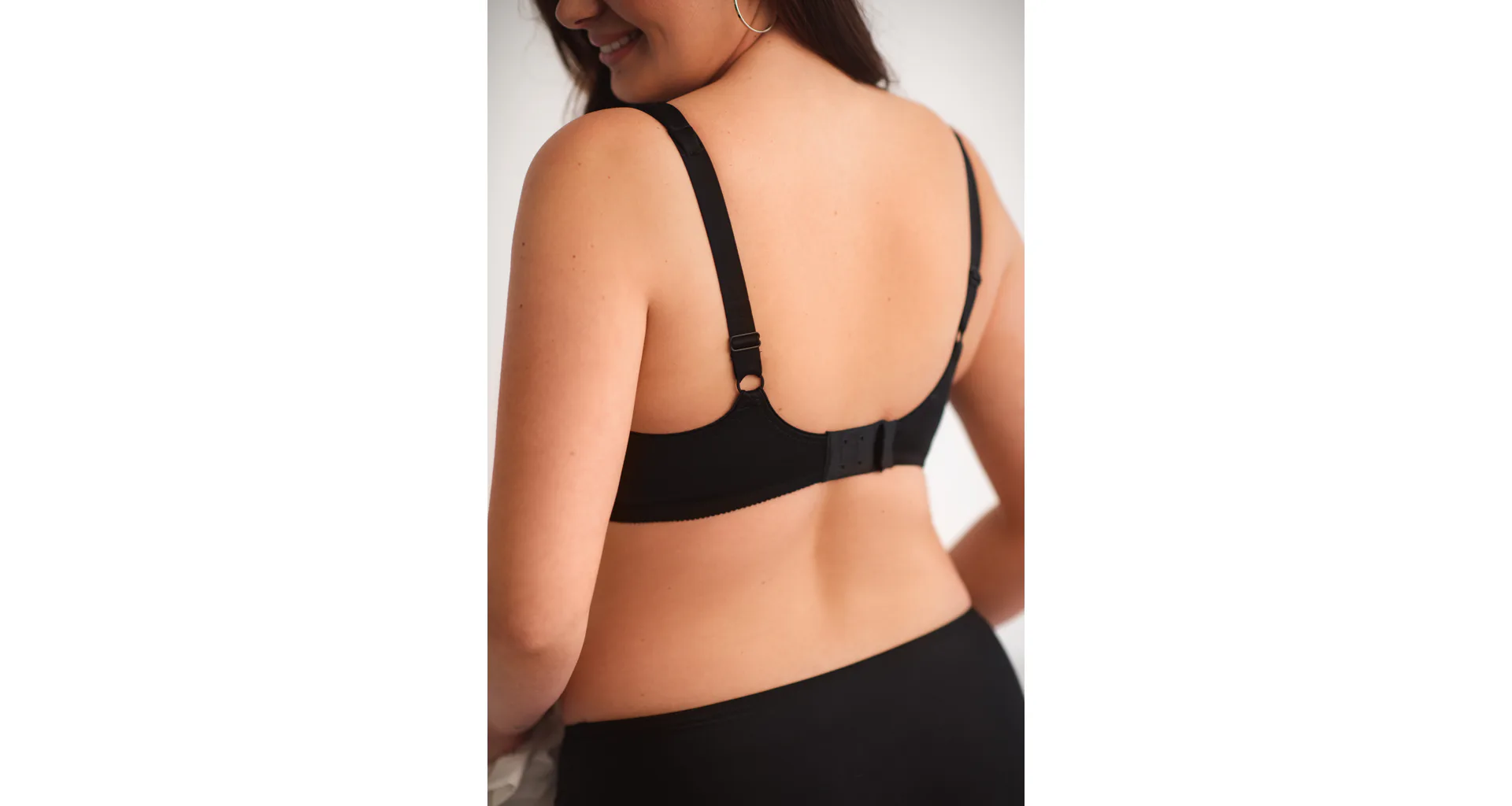Čierna podprsenka má zmenšujúci efekt, ideálny pre ženy, ktoré chcú opticky zmenšiť objem pŕs. Rozšírené ramienka sa nezarezávajú a zapínanie sa nachádza vzadu na háčiky. Doprajte si atraktívnu zmenšovaciu podprsenku pre veľké prsia.