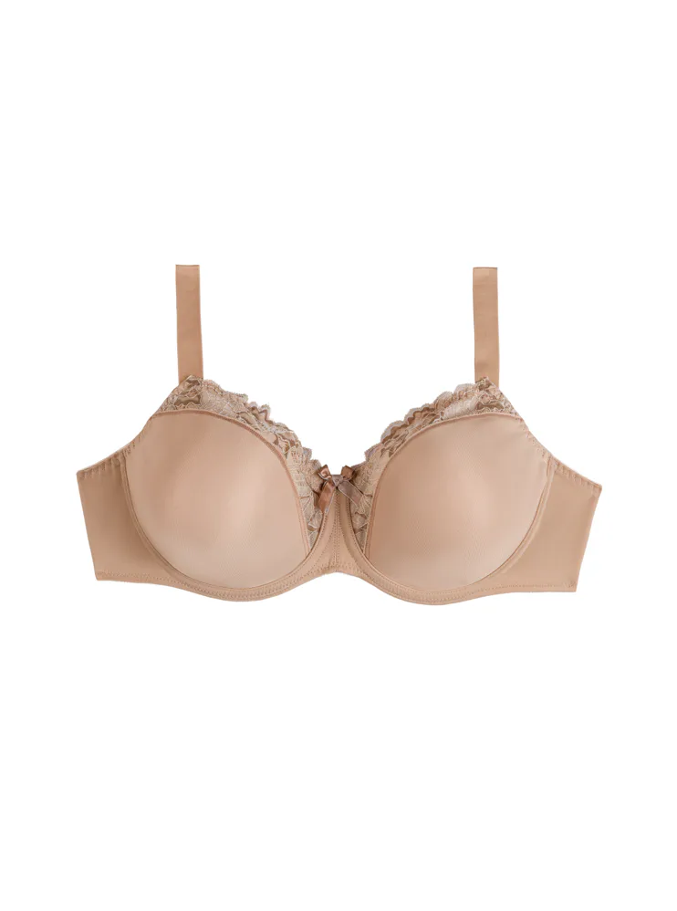 Nevystužená podprsenka s kosticami opticky zmenší vaše poprsie až o jednu veľkosť. Zaistí prirodzene okrúhly tvar pŕs a poskytne maximálnu oporu. Koše podprsenky zdobí rafinovaná čipka av strede upúta pozornosť elegantná mašlička.