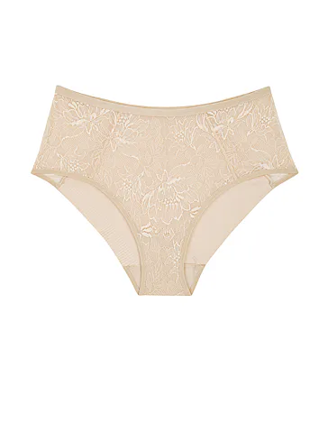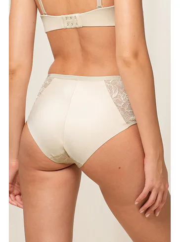 Krémové nohavičky Triumph Amourette Charm so zvýšeným pásom sú medzi ženami veľmi obľúbené, prispôsobia sa vašej postave a poskytnú maximálne pohodlie. Vďaka formujúcemu efektu jemne tvarujú siluetu a zaisťujú hladký vzhľad pod oblečením. Predný a zadný diel zdobí jemná čipka. Užívajte si pohodlie bez kompromisov a kúpte si k nohavičkám aj podprsenku z rovnakej kolekcie.