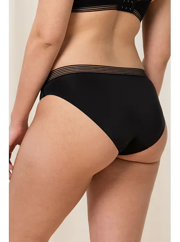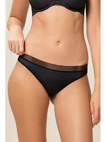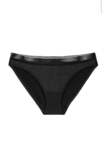 Čierne nohavičky klasického strihu sa príjemne prispôsobia vašim krivkám, nikde netlačia a nezarezávajú sa. V páse zaujmú širokým lemom s prúžkami. Lepená podšívka z mikrovlákna zaisťuje neuveriteľnú ľahkosť a dokonale hladký vzhľad, ideálny pod priliehavé oblečenie. Nohavičky majú zosilnený bavlnený klin a môžete ich zaobstarať aj v praktickej telovej farbe. Urobte si radosť novou spodnou bielizňou, ktorá kombinuje komfort a eleganciu.