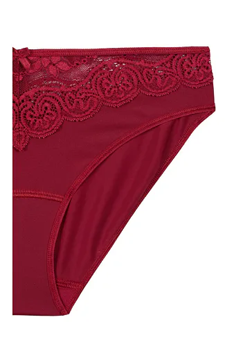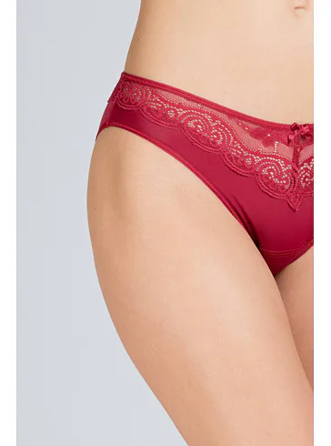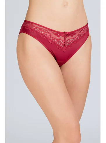 Dámské kalhotky v oblíbeném klasickém střihu zajistí maximální komfort. Romantická krajka zdobí přední i zadní část. Malá saténová mašlička vpředu dodává kalhotkám šmrnc. Kalhotky z elastického mikrovlákna se dokonale přizpůsobí vaší postavě.