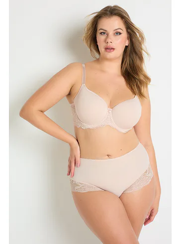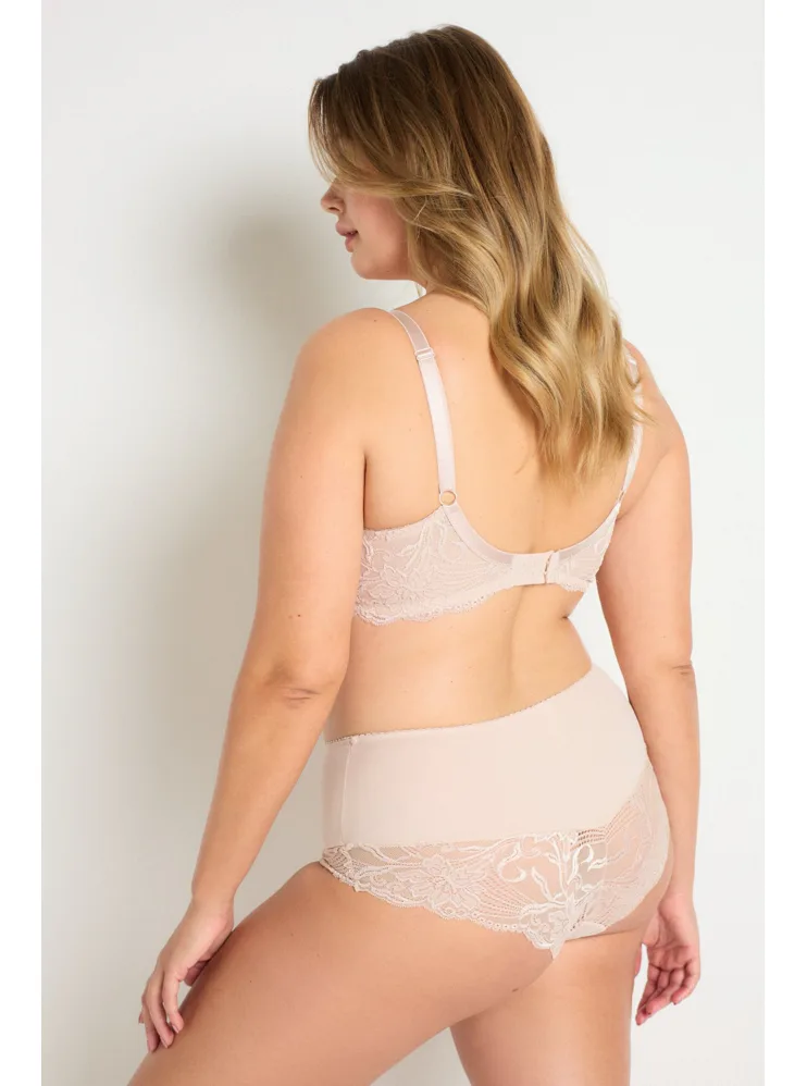 Telová podprsenka s vyšším stredom zafixuje poprsie v správnej výške. Viete, čo je dištančná pletenina? Ide o inovatívny spôsob výroby, ktorý umožňuje cirkuláciu vzduchu a košíčky sa lepšie prispôsobia prirodzenému tvaru vašich pŕs. Podprsenka zaujme jemnou čipkou vpredu aj vzadu, čo jej dodáva romantický vzhľad. Má širšie nastaviteľné popruhy a praktické zapínanie vzadu pomocou troch háčikov s tromi uťahovacími polohami. Doprajte si luxus, ktorý si zaslúžite.