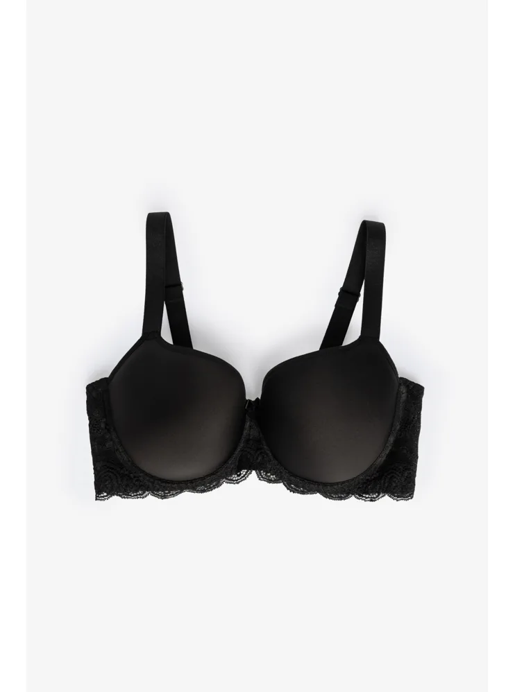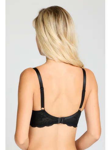 Čierna podprsenka s vyšším stredom zafixuje poprsie v správnej výške. Viete, čo je dištančná technológia? Ide o inovatívny spôsob výroby, ktorý umožňuje cirkuláciu vzduchu a košíčky sa lepšie prispôsobia prirodzenému tvaru vašich pŕs. Podprsenka zaujme jemnou čipkou vpredu aj vzadu, čo jej dodáva romantický vzhľad. Má širšie nastaviteľné popruhy a praktické zapínanie vzadu pomocou troch háčikov s tromi uťahovacími polohami. Doprajte si luxus, ktorý si zaslúžite.