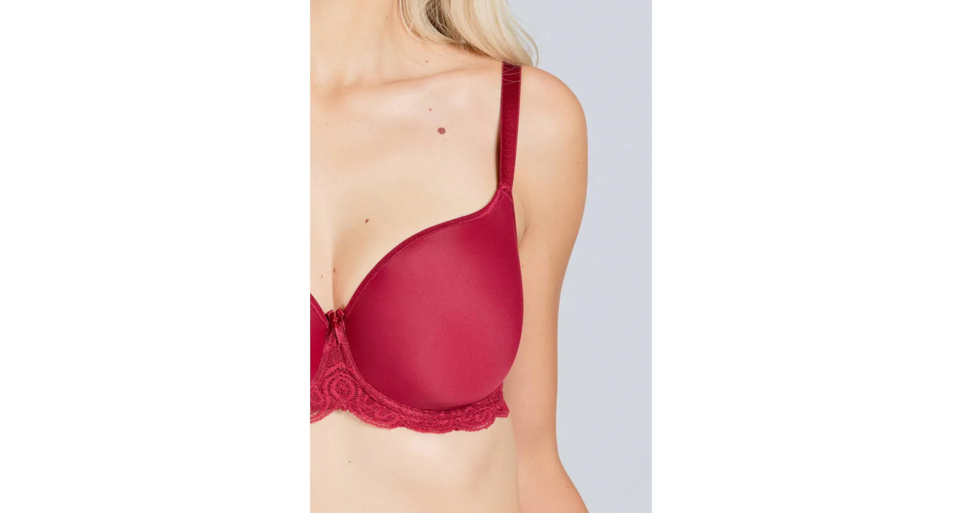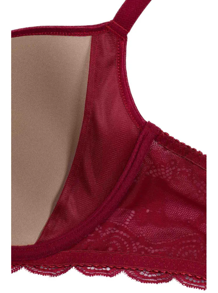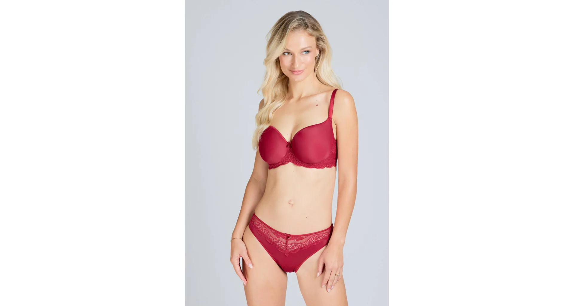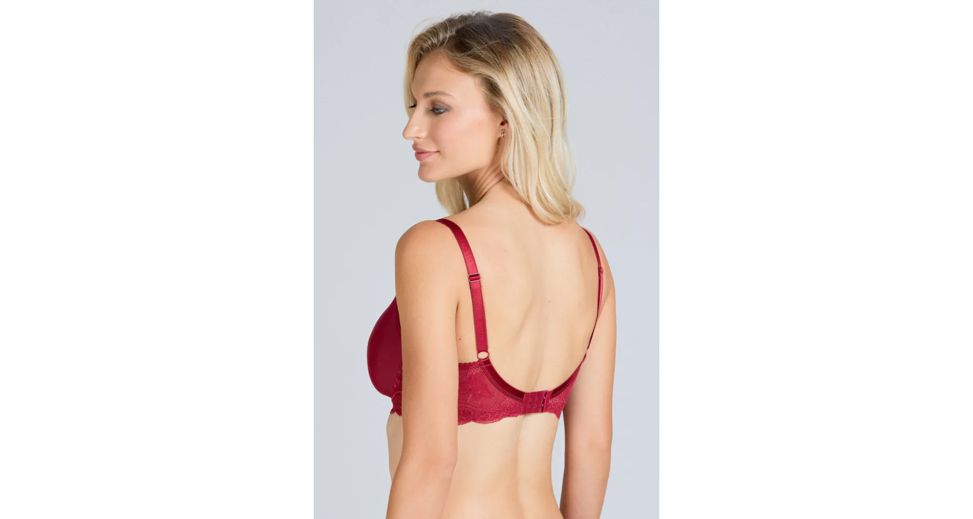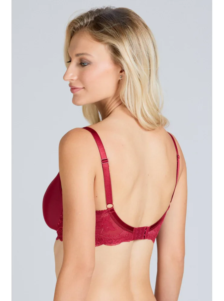 Tmavo červená podprsenka s vyšším stredom zafixuje poprsie v správnej výške. Viete, čo je dištančná technológia? Ide o inovatívny spôsob výroby, ktorý umožňuje cirkuláciu vzduchu a košíčky sa lepšie prispôsobia prirodzenému tvaru vašich pŕs. Podprsenka zaujme jemnou čipkou vpredu aj vzadu, čo jej dodáva romantický vzhľad. Má širšie nastaviteľné popruhy a praktické zapínanie vzadu pomocou troch háčikov s tromi uťahovacími polohami. Doprajte si luxus, ktorý si zaslúžite.