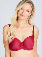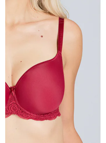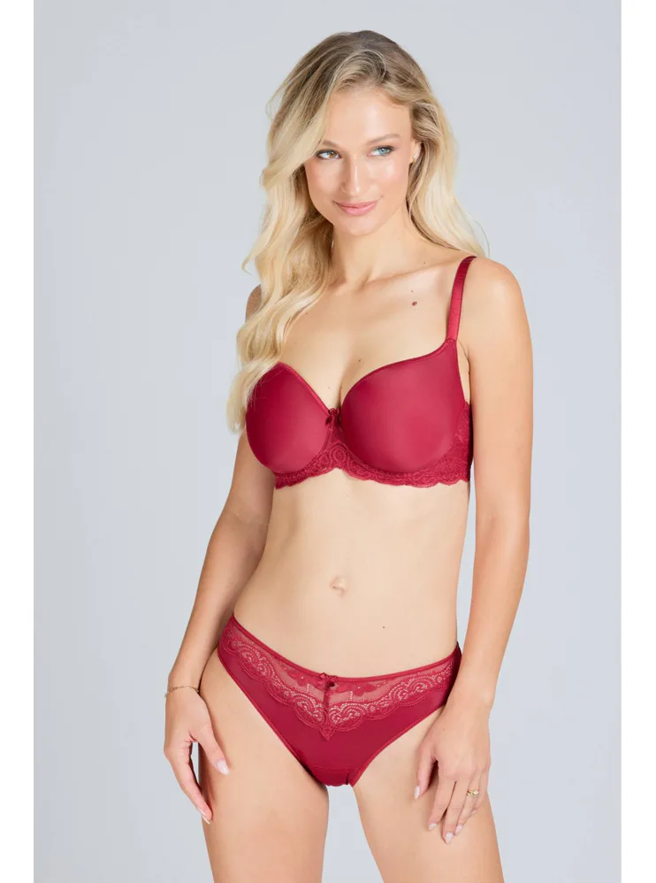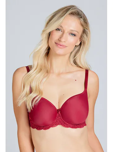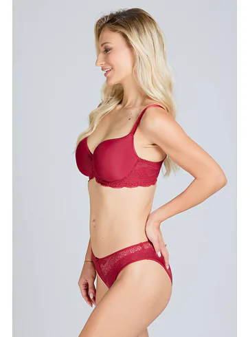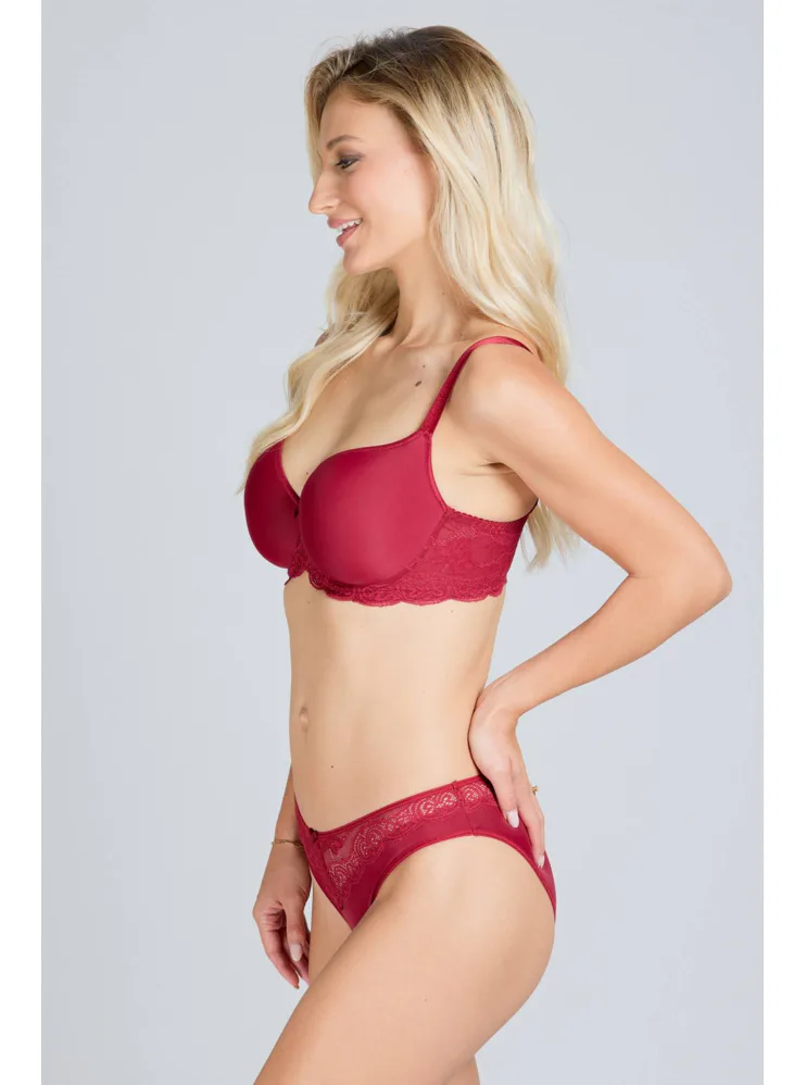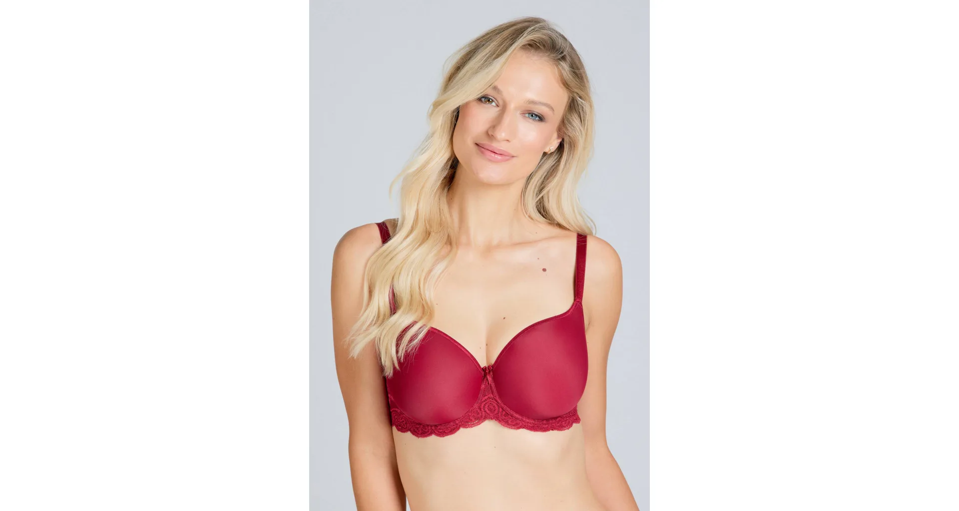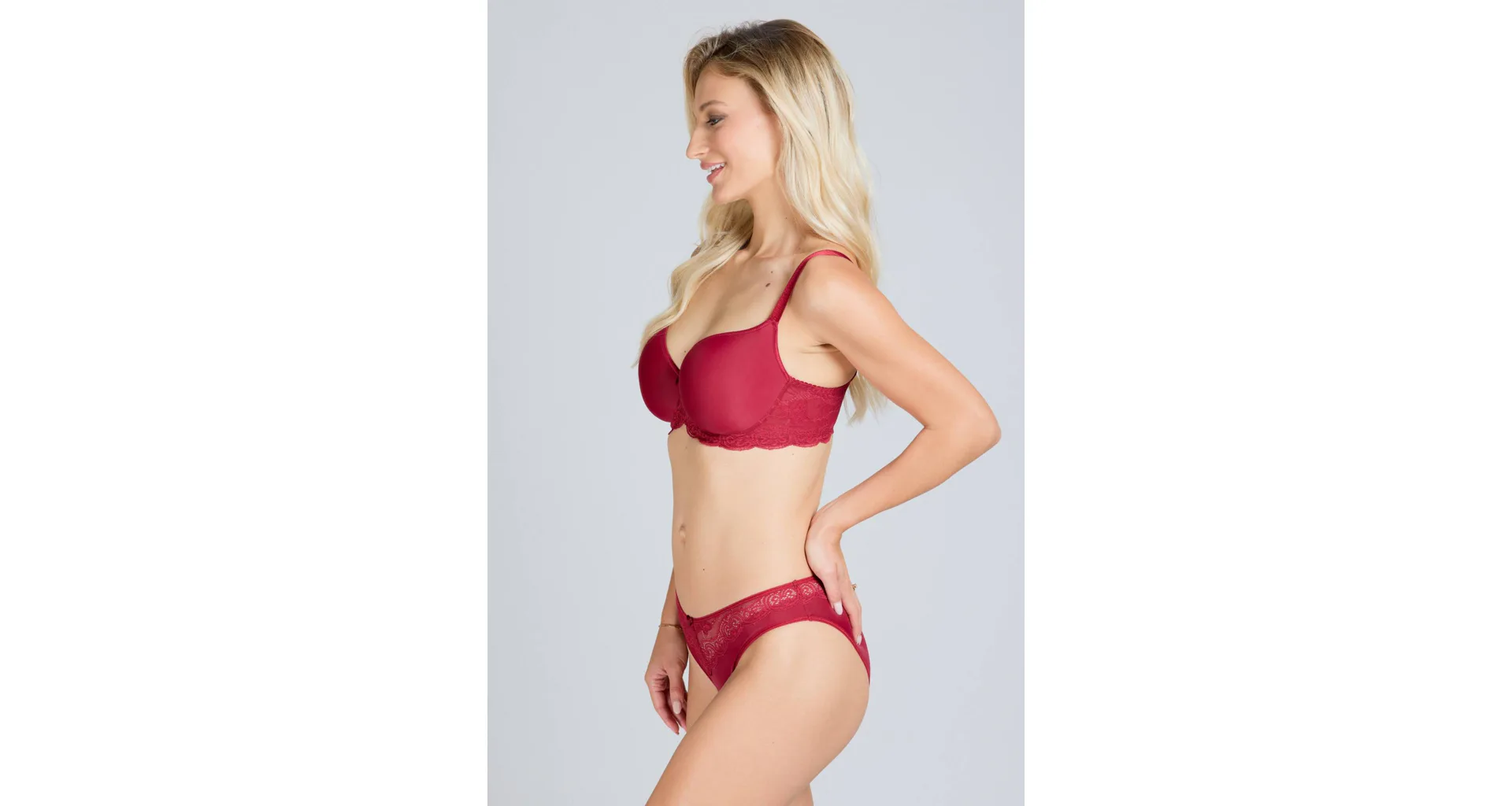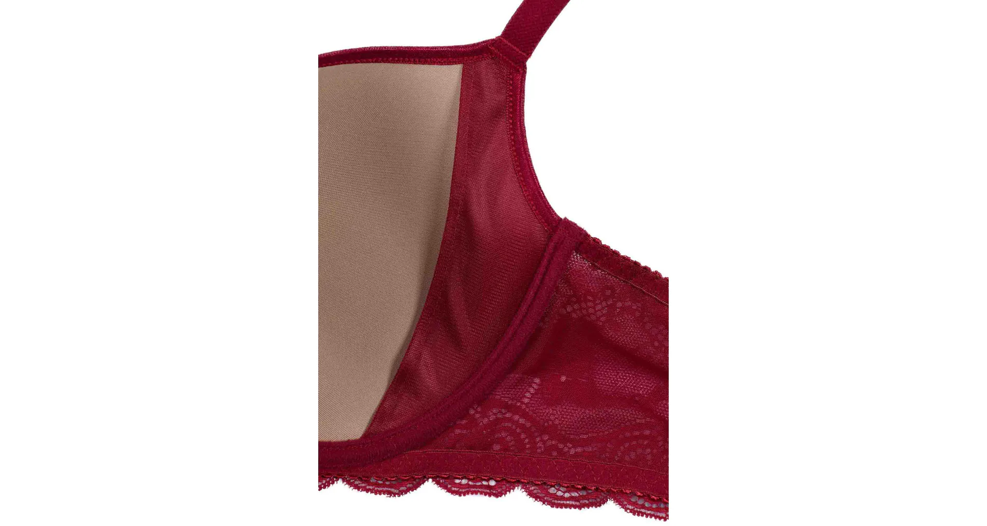 Tmavo červená podprsenka s vyšším stredom zafixuje poprsie v správnej výške. Viete, čo je dištančná technológia? Ide o inovatívny spôsob výroby, ktorý umožňuje cirkuláciu vzduchu a košíčky sa lepšie prispôsobia prirodzenému tvaru vašich pŕs. Podprsenka zaujme jemnou čipkou vpredu aj vzadu, čo jej dodáva romantický vzhľad. Má širšie nastaviteľné popruhy a praktické zapínanie vzadu pomocou troch háčikov s tromi uťahovacími polohami. Doprajte si luxus, ktorý si zaslúžite.